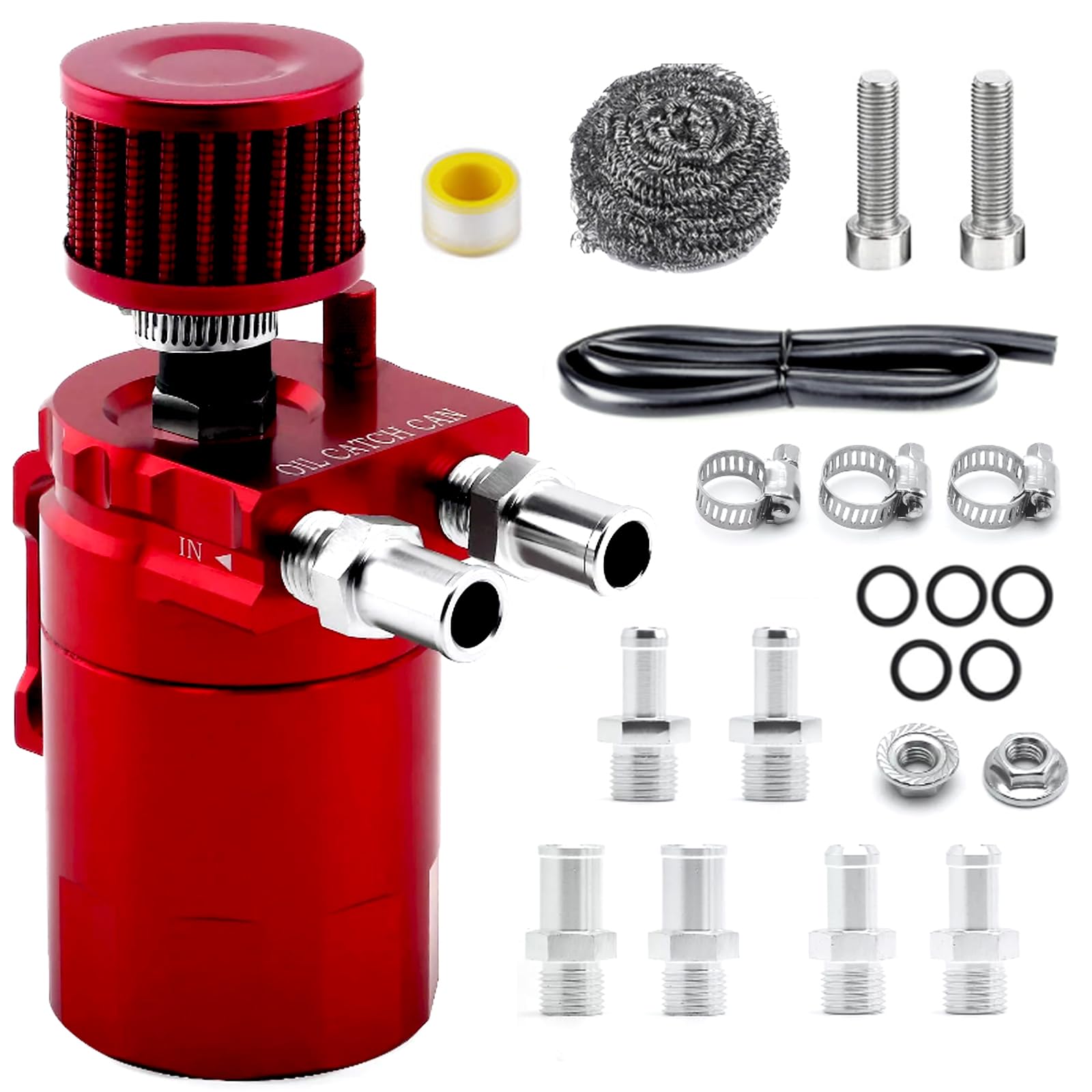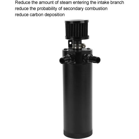 Oil Catch Can Shkalakar Réservoir D'huile Universel, Réservoir D'huile Récupérateur Huile Moteur Application]VVORHSBELL oil latch can be compatible with most petrol/diesel cars, ensuring easy installation with enough engine compartment space MATERIALS T-6061 300ml Premium Aluminum Oil Tank (69x115mm) with M16x1.5 thread, 0.8m hose and 18cm steel bracket Récupérateur vapeur d'huile 2L - pièces et voitures de course à vendre Installation : 2 options d'installation, à utiliser avec un filtre de reniflard (ventilé) ou scellé (système PCV) pour une installation flexible. Il comprend un réservoir à huile (ou déflecteur) en aluminium de 300 ml, de couleur noire, avec un filtre intégré. La marque est VVorhsBell, c'est du neuf avec... Ce récupérateur d'huile de 300 ml peut présenter un design compact mesurant 69 mm de diamètre et 115 mm de hauteur Pour les voitures pré-PCV uniquement - L'utilisation du PCV provoque une perte de vide et des problèmes de moteur Fonction : filtre le brouillard d'huile, réduit la contamination d'admission et maintient une performance optimale du moteur, capture l'huile et l'humidité de l'air PCV/CCV, réduisant les dépôts de carbone et prolongeant la durée de vie du moteur Caractéristiques : le filtre de reniflard retient l'huile mais évacue l'air ; le système de déflecteur réduit l'apport d'huile/gaz.