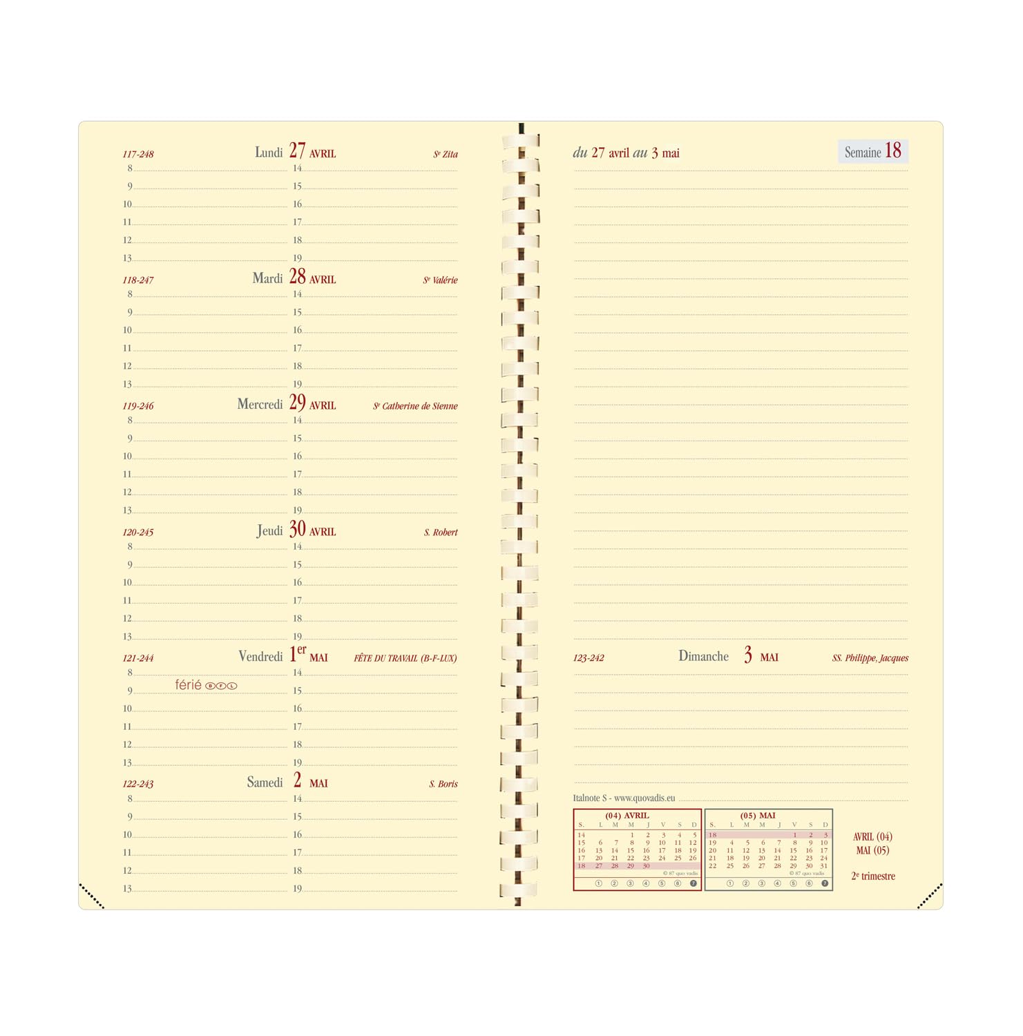 Agenda Avec élastique Vert Agenda Semainier Quo Vadis Président Fas Silk - 21 X 27 Cm - Vert D'eau Agenda Quo Vadis 2026 10x15 Aide à optimiser les Quo Vadis a conçu cette gamme d'agendas Time & Life pour concilier vie professionnelle et personnelle. Elégante et robuste cette toile enduite grain vachette est une valeur sûre qui résistera aux chocs du quotidien AGENDA MINISTRE SEMAINIER QUO VADIS CLOVER TOSCANA - 16 X 24 CM - ROSE Type de couverture : Toile enduite, piqûre façon sellier Agenda Année Civile - TIME&LIFE POCKET FR avec répertoire - Couverture... Aide à optimiser les différents temps de vie : personnels, familiaux et professionnels., ., Répertoire amovible - Fermeture à élastique Présentation de la semaine en couleurs, pages de notes repositionnables, répertoire thématique un marque-page repositionnable. Fermeture par élastique, couleurs tendance, pages d'informations pratiques, pages de notes et Quo Vadis est la marque qui accompagne le quotidien, les pensées et les projets des petits et grands avec ses agendas et carnets. L'agenda semainier des temps de vie au format poche.