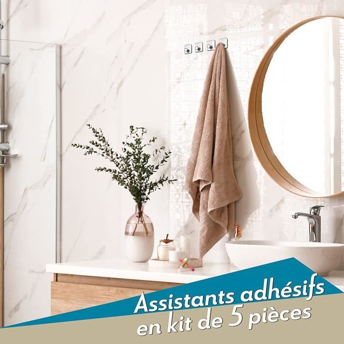 DGYB Lot De 2 Crochets à Ventouse Pour Serviette De Douche, Porte En Verre Mur Salle De Bain Peignoir Manteau Chapeau Crochet A Ventouse Robuste En Abs 5 Kg... Sa conception réutilisable facilite son transport lors de vos déplacements. Retirez le film protecteur de la ventouse. Aucune trace ne restera sur la surface du mur. Appuyez pour évacuer l'air. Caractéristiques du produit Les crochets à ventouse fonctionnent selon le principe de l'adsorption sous vide, ne nécessitent aucun perçage et sont extrêmement faciles à installer et à retirer. Installation rapide : nettoyez la surface au préalable. TISKEN Crochet avec ventouse, blanc Tirez le crochet vers le bas pour le verrouiller, veuillez attendre 1 heure avant d'accrocher des objets. AMOVIBLE ET RÉUTILISABLE Après avoir retiré les crochets, lavez la couche d'adsorption de la ventouse avec de l'eau, séchez-la, puis réinstallez-la et réutilisez-la. Ventouse Crochet LEMROE Crochet Adhésif,12 Pièces Crochet Murals,Créatif Porte Manteau Crochets Ventouse Les bords des crochets à ventouse sont finement polis, arrondis et lisses pour éviter de se rayer les mains. Ils peuvent être utilisés pendant longtemps, même dans des environnements humides, et peuvent résister efficacement à l'érosion par la vapeur d'eau pour garantir la sécurité et la stabilité des objets suspendus. L'installation et le retrait sont remarquablement simples et rapides, ne prenant que quelques secondes. Ces crochets ventouse s’adaptent à toutes les surfaces lisses, où que vous soyez Force adhésive supérieure : la base du crochet à ventouse est fabriquée à partir d'un matériau en silicone souple naturellement adhérent, offrant une excellente flexibilité et une grande puissance adhésive, avec une capacité de charge maximale d'environ 5 kg. Il permet de gagner du temps et d'économiser des efforts, n'endommage pas les murs et vous permet d'accrocher des objets sans effort, pour profiter d'un espace propre et ordonné. Application polyvalente : convient aux surfaces lisses, sèches, planes et non poreuses telles que le verre, les miroirs, le carrelage, l'acier inoxydable, le métal et les murs stratifiés. Après l'avoir retiré, il suffit de rincer à l'eau la couche adhésive de la ventouse, de la laisser sécher à l'air libre et de la réinstaller. FACILE À INSTALLER Le crochet à ventouse est remarquablement simple et rapide à installer, l'ensemble du processus ne prenant pas plus d'une dizaine de secondes. Retirez le film protecteur de la ventouse, appuyez fermement le crochet contre le mur pendant plusieurs secondes pour expulser l'air, puis appuyez sur la partie crochet pour le verrouiller en place.