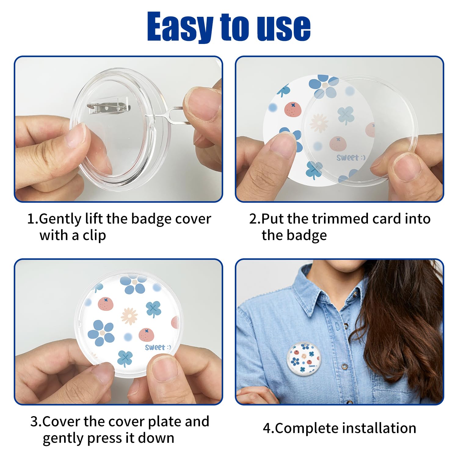 Kit Badges Acryliques Vierges Cadeaux Personnalisés 100 Badges Vierges 37mm à Personnaliser - Kit Création Badges DIY Badge Somfy Badges Personnalisables 58 Mm 12 Images pour BADGES 56mm • BG00071 • A personnaliser DIY Badge Studio, le logiciel de création et de personnalisation de badges... 【Emballage du produit】Vous recevrez 20 badges à personnaliser et 2 épingles. 【Matériaux de haute qualité】Les badges personnalisables sont fabriqués en acrylique de haute qualité, ont des bords lisses sans bavures, sont durables et réutilisables. Leur design transparent garantit une présentation claire tout en protégeant le contenu à l'intérieur. En raison de la lumière, la couleur réelle du produit est légèrement différente de celle de l'image affichée, veuillez m'en excuser. 【Diamètre extérieur】Diamètre extérieur des badges à personnaliser : 58 mm, diamètre intérieur : 54 mm. Les badges à personnaliser sont parfaits pour les photos d'une taille maximale de 54 mm et sont faciles à transporter grâce à leur design compact. Le badge est idéal pour les écoles, les expositions, les activités d'équipe, les mariages ou les anniversaires d'enfants. Avec ces 40 badges acrylique transparents, je peux créer mes propres designs ! Diamètre 4cm, ils sont solides, étanches et réutilisables. Les épingles...