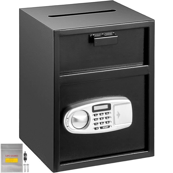 Dimensions du compartiment supérieur (l x H) : 28,5 x 19 cm Protégez-vous contre la falsification du code et les tentatives d'effraction. Matériau : acier Q235 + doublure en velours Le coffre-fort de dépôt VEVOR est conçu en acier au carbone de haute qualité, offrant une robustesse et une durabilité exceptionnelles. Il est équipé d'une serrure à code électronique avancée, garantissant une excellente sécurité grâce à des boulons résistants à l'effraction Système d'alarme double : Notre coffre-fort avec fente déclenche une alarme sonore après trois tentatives de code PIN erronées ou un choc violent. Coffre-fort à fente de 102 L : Doté d'une fente de dépôt frontale pour un dépôt rapide d'argent et de documents sans ouverture. EN STOCK : Mophorn Coffre-fort de dépôt grande capacité 102 L, coffre de sécurité électronique à 3 niveaux, avec fente frontale, clavier numérique et clés... Idéal pour les particuliers, les entreprises et les bureaux Conception de sécurité renforcée : fente anti-pêche étendue avec dents antivol. Livre Coffre Fort VEVOR Coffre-For De Dépôt Grande Capacité De 102 L, Coffre Safe Pour Argent Bijoux Ainsi, le coffre-fort arrive chez vous en bon état et prêt à l'emploi. Idéale pour ranger argent liquide, passeports, bijoux, or, montres et documents. Idéal pour la maison, les commerces, les dons, les bulletins de vote ou les objets de collection Montage facile et utilisation polyvalente : ce coffre-fort est doté de 6 trous pré-percés pour une fixation murale ou au sol sécurisée. Il est également équipé d'une prise d'alimentation externe pour un accès de secours en cas de panne de batterie Il vous avertit des accès non autorisés et dissuade les intrus Contenu du coffret 1 x Coffre-fort, 2 x Clé A, 2 x Clé B Spécification Numéro de modèle de l'article : TD-SS70, Capacité : 3,6 pi³ / 102 L Emballage de protection Nous avons appliqué plusieurs couches d'emballage protecteur pour éviter tout dommage pendant le transport. Notre coffre-fort est doté d'une construction en acier au carbone renforcé, d'un espace de rangement intérieur spacieux et de plusieurs méthodes de déverrouillage. Sûr, confidentiel et facile à utiliser, il est idéal pour garder vos objets en sécurité et organisés. Trous de montage : 2 en bas, 4 à l'arrière VEVOR Coffre-fort mural encastrable, hauteur 109 cm, 4 niveaux, empreinte digitale et clavier Grande capacité de 3,6 pi³ / 102 L avec deux compartiments pour un rangement organisé de l'argent liquide, des chèques, des dossiers et des bijoux.