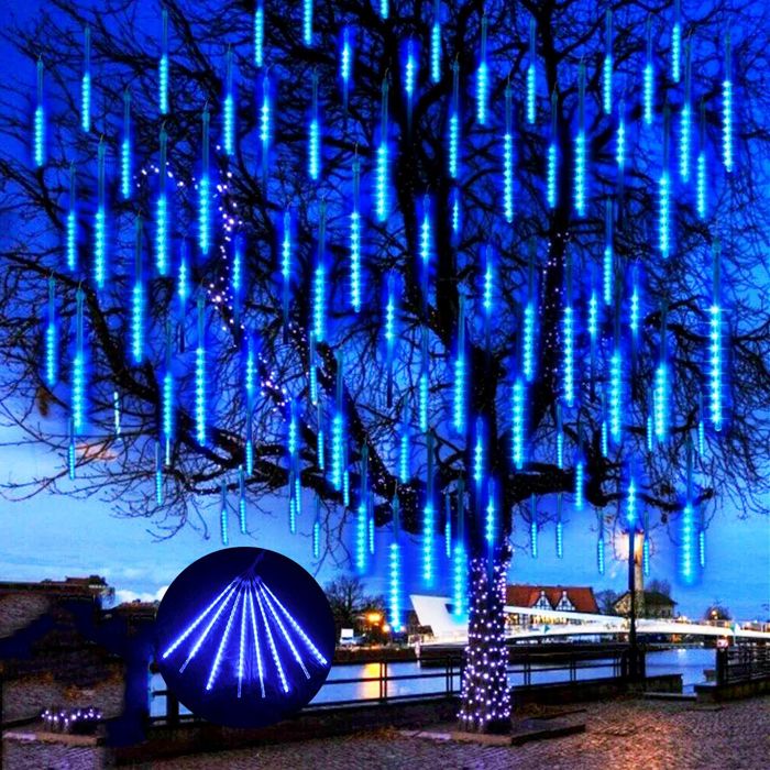 50 cm - Bleu - guirlande de lumières LED sous forme de pluie de Découvrez une pluie d'étoiles filantes réaliste grâce aux LED qui s'allument et s'éteignent rapidement de manière séquentielle, créant un spectacle festif inoubliable. Guirlande Effet Pluie Guirlande Lumineuse Pluie De Météores - 30 Cm, 10 Tubes, 360 LED - Bleu Lumières Extérieures Basse Tension 7V [Guirlande lumineuse extérieure Noël] : Avec une étanchéité IP65 et des LED double face, nos guirlandes lumineuses d'extérieur résistent à la pluie et à l'humidité. 288Led Météores Pluie Lumières, Étanche 30Cm 8 Tubes Solaire Chute... Guirlande Lumineuse Noël Exterieure, 80Cm 8 Tubes Led Météores Pluie... [Éclairage de Noël polyvalent] : Laissez libre cours à votre créativité avec nos guirlandes lumineuses d'extérieur en forme de pluie de météores. Les lumières scintillantes et étincelantes créent un effet magique de pays des merveilles hivernal pendant des années. Décorez parfaitement les toits, les arbres, les terrasses ou les paysages pour créer une ambiance festive à couper le souffle. Longueur des tubes : 30 cm, 50 cm Diamètre des tubes : 1,2 cm Nombre d'ampoules : 192 LED pour le modèle 30 cm, 288 LED pour le modèle 50 cm Distance entre les tubes : modèle 30 cm : 30 cm, modèle 50 cm : 50 cm Angle d'irradiation : 360° Puce LED : dernière SMD2853 Tension d'entrée : CA 220-240 V Tension de sortie : CC 7 V Matériau du tube : PVC Étanchéité du boîtier de l'adaptateur 7 V : IP44 Mode de fonctionnement : mode pluie [Modèle 16/24 tubes] : Choisissez des tubes de 30 cm ou 50 cm de long par ensemble de 8 tubes (192/288 LED). Longueur du câble (de la fiche au premier tube) : 3 m.