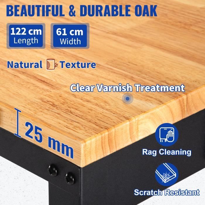 Plan De Travail Avec Prises USB Et LED Établi Réglable De 60 Pouces, Capacité De Charge De 1500 Lb, établi De Garage Avec établi Atelier Robuste Plan travail réglable 1524 mm,VEVOR plan travail avec tiroirs rangement Établi Multifonctionnel Pliable 5 en 1, 94x48x80 cm, Établi Mobile... Cela garantit la stabilité et évite tout vacillement pendant que vous travaillez, vous permettant ainsi de vous concentrer sur la tâche à accomplir. Capacité de charge impressionnante : Équipé de pieds en caoutchouc fixes, notre établi s'adapte aux sols irréguliers, offrant une résistance au glissement et un support de nivellement. Éclairage LED pour une meilleure visibilité : Équipé d'une lampe LED de 14 W, notre établi offre un éclairage économe en énergie. Construction stable : Fabriqué en acier robuste, notre établi présente une structure robuste avec plusieurs traverses. Il est particulièrement utile dans les sous-sols ou les garages faiblement éclairés, garantissant une visibilité optimale et vous permettant de travailler avec précision. Solutions de rangement efficaces : Pour garder vos outils organisés, nous fournissons 30 crochets de suspension, une double surface de travail, un panneau perforé et des tiroirs. Cette configuration de stockage complète garantit que tous vos outils sont bien rangés, facilement accessibles et favorise un flux de travail efficace, vous permettant d'accomplir vos tâches rapidement. Établi en acier A3 pour garage, puissance max. 1 500 W, capacité de charge de 100 kg, épaisseur du plateau de 12 mm, câble de 1,5 m, 4 prises secteur, 2 ports USB, 30 crochets