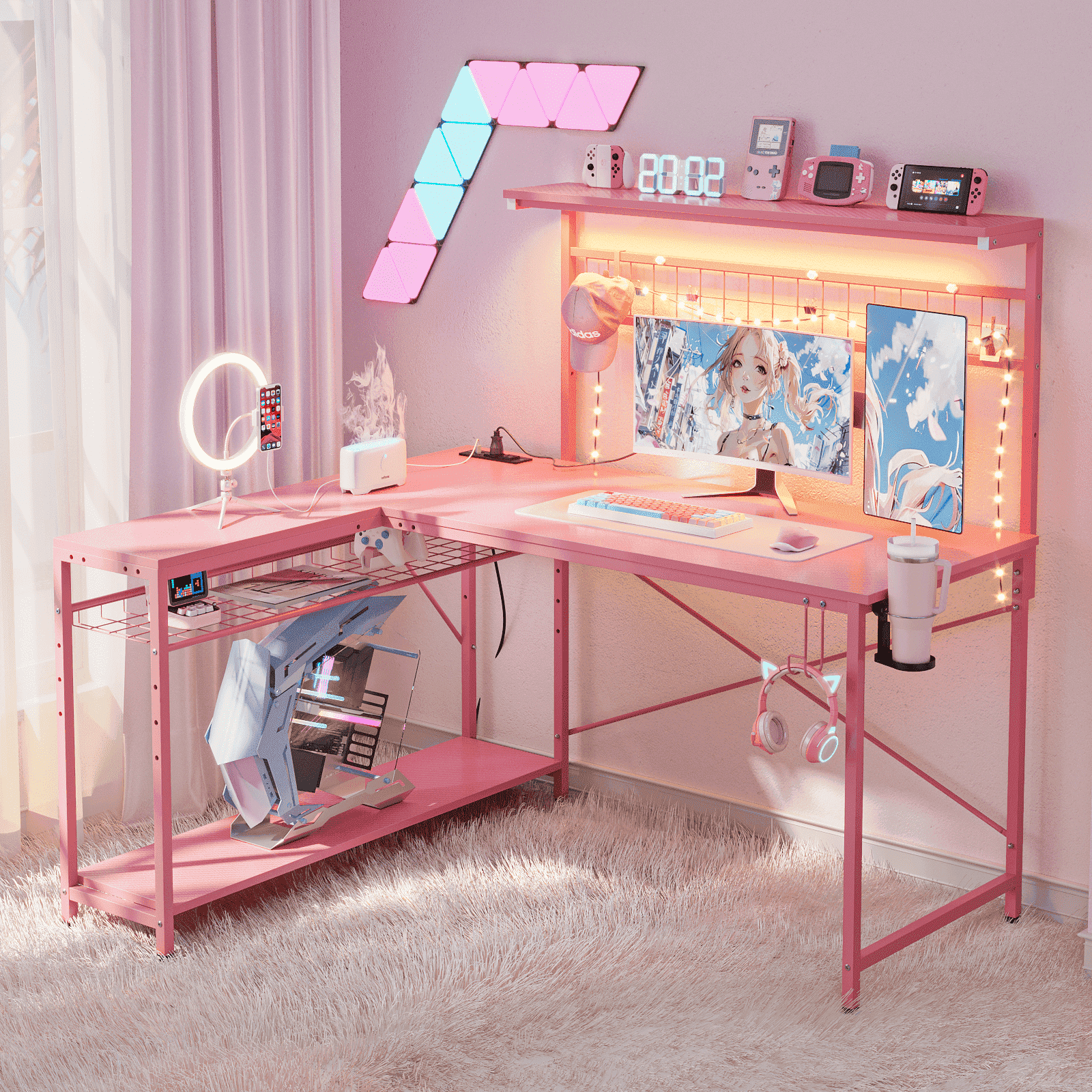 Bestier Bureau de jeu en fore de L, bureau d'angle avec luières LED... Design compact et réversible – gain de place:Avec ses dimensions de 106., 50 x 82 x 91,2 CM, ce petit bureau en forme de L est parfait pour les petits espaces, chambres ou bureaux à domicile. Son design réversible (gauche/droite) permet une installation flexible Bureau Gaming Rose Setup Bestier Bureau D'ordinateur 140 Cm Avec Étagère Pour Moniteur, Bureau De Jeu Avec Étagères Meuble De Rangement Éclairage LED RGB – ambiance gaming personnalisée:Les bandes LED intégrées offrent 20 couleurs statiques et 22 modes dynamiques, idéales pour créer une ambiance immersive, que ce soit pour travailler, étudier ou jouer Lit 140 x 190 cm, Cadre de Lit en Métal, avec Tête de Lit, Éclairage... Pratique et fonctionnel – avec prises et ports USB:Équipé de 3 prises de courant et 2 ports USB, ce bureau vous permet de recharger facilement ordinateur, smartphone, lampe ou manette de jeu, tout en réduisant l’encombrement des câbles Bestier Bureau Informatique avec étagères de Rangement 120cm Petit Bureau d'angle pour écrire et