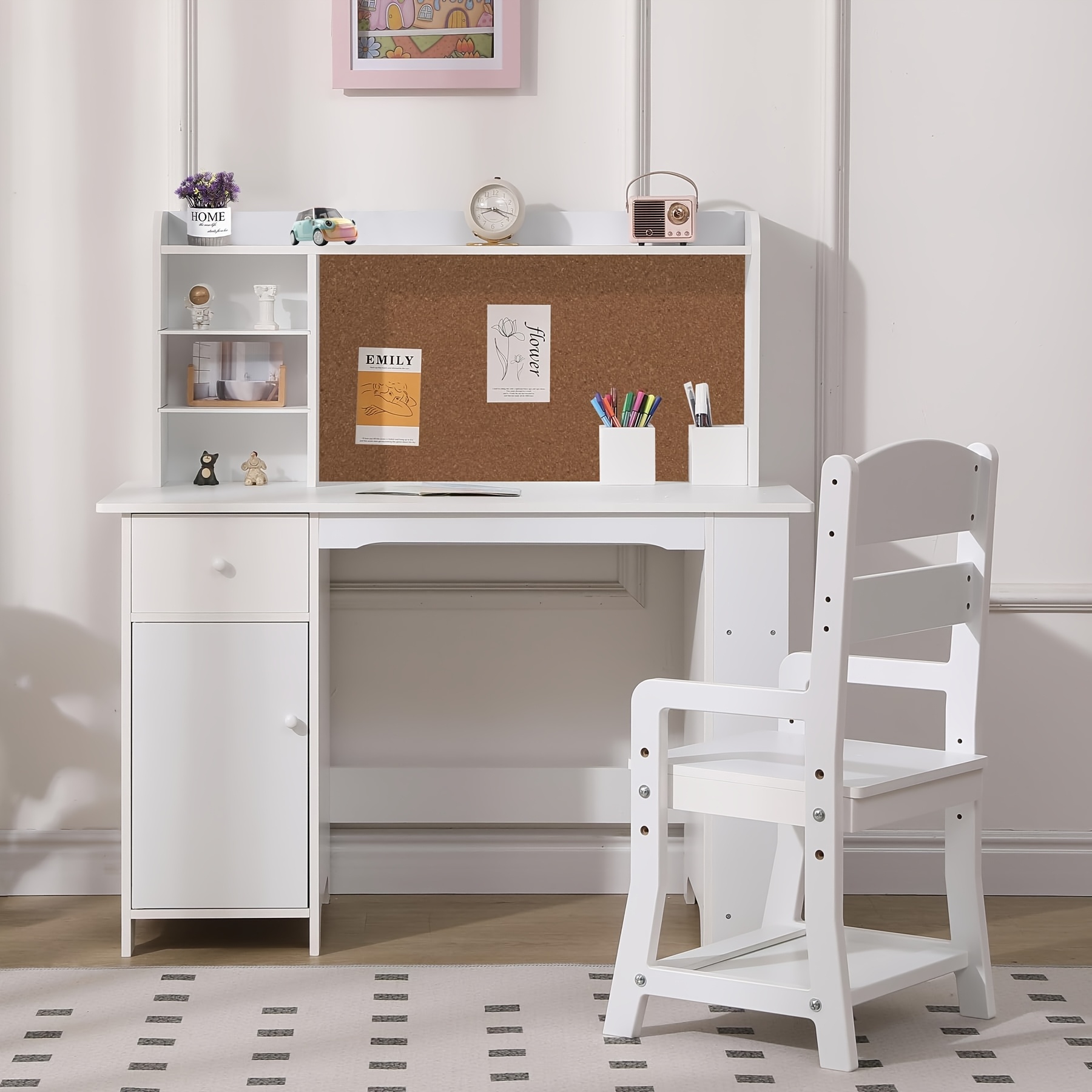 Informations sur les tailles Bureau : environ 105 x 75,5 x 62,5 cm. Séparation scientifique et bureau élargi : le bureau dispose d'un design scientifique de séparation qui maintient les articles de papeterie organisés et bien rangés. Matériau de qualité supérieure : l'ensemble de bureau et de chaise multifonction pour enfants est fabriqué en plaque de haute qualité et en plastique. Design à distance dorée et tiroir de rangement spacieux : le design doré à distance favorise une posture assise droite, protégeant la vision de votre enfant. Le montage est rapide et simple grâce aux instructions simples fournies dans le colis. Le dossier creux de la chaise améliore la circulation de l'air pour plus de confort. Nom de l'article : ensemble de chaises de bureau. La table et la chaise peuvent être ajustées en hauteur. Ensemble bureau et chaise pour enfants avec éclairage led plateau incliné et tiroir coulissant réglable en hauteur bleu couleurs : bleu matériaux : mdf, pp, fer dimensions du plateau : 71 x 38 cm (l x l) dimensions de la table : 71 x 52 x 52-79 cm (l x l x h) dimensions de la chaise : 45 x 37 x 63-78 cm (l x l x h) poids net : 14,5 kg capacité de charge par le plateau de table : 80 kg... Cadeau parfait et assemblage facile : cet ensemble de chaises de bureau multifonctions combine praticité et plaisir, ce qui en fait un cadeau idéal pour tout enfant. La zone d'écriture élargie offre suffisamment d'espace pour que votre enfant puisse travailler confortablement et efficacement. La zone d'écriture est élargie pour le rendre plus spacieux et confortable. Ensemble Bureau Et Chaise Pour Enfant Tutto De Coloris Gris Et Chêne Matériau : plastique, plaque. Ajustez manuellement la hauteur de la table de 65 cm à 71 cm. La hauteur de la chaise peut être ajustée de 34 cm à 40,1 cm. Matériaux de qualité supérieure : fabriqué à partir d'assiettes et de matériaux en plastique de haute qualité, cet ensemble de bureau et de chaise multifonction est durable et sûr. Caractéristiques : hauteur réglable, panneau château, avec tiroir. Ensemble bureau et chaise pour enfant tutto table et chaise réglable en... Ensemble Bureau Chaise Design Château Bureau En Bois Massif Réglable Avec étagère Simple Pour Enfants, Table D' étude Et Ensemble De Chaises Pour Enfants - Chine Table Des Enfants, De La Maternelle Table Chaise Bureau Enfant Avec Tiroir Support Livres Style : dessin animé Pour enfants. Hauteur réglable pour les enfants en pleine croissance : ajustez facilement la hauteur du bureau (65 cm à 71 cm) et de la chaise (34 cm à 40,1 cm) au fur et à mesure que votre enfant grandit, assurant un ajustement parfait à chaque étape de développement. Il suffit de placer votre main sur la barre à bascule et de tirer vers le haut.