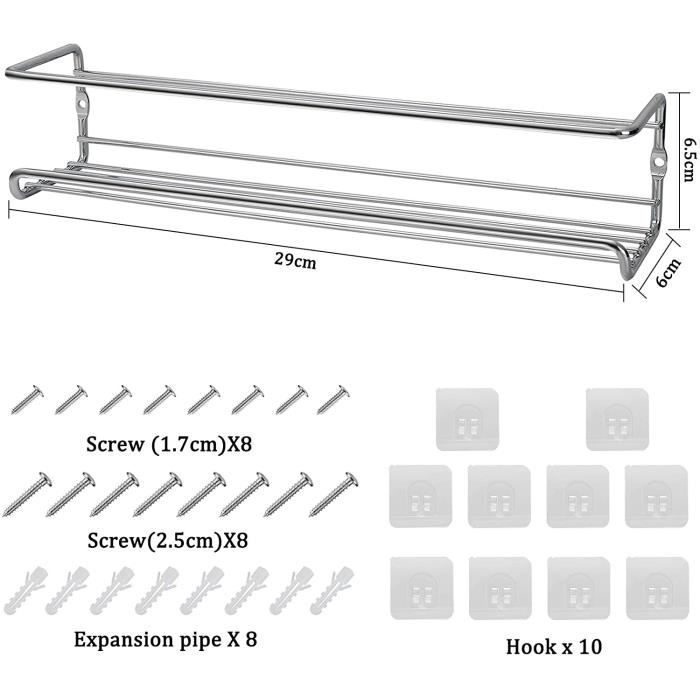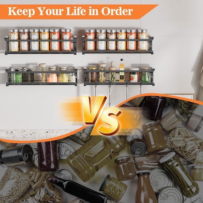 Support Mural épices Rangement Epices Cuisine, Étagère Épices En Métal Sans Percage, Range Porte Epices Cuisine ETAGERE A EPICES Etagere Epices Cuisine Sans Percage Range Epices Cuisine avec Crochet Etagere Tournante Cuisine - Etagere Epices Cuisine Anti-Rayures - Organisateur De Placard... 【Nettoyage facile】Etagere a epices est facile à nettoyer. Un chiffon humide et une petite quantité de détergent suffisent pour éliminer la saleté, les résidus d'huile et même les résidus d'épices. 【Stable et facile à installer】Porte epices cuisine peut être installée de deux manières. 【Matériau de haute qualité】Rangement epices cuisine est fabriquée en fer et recouverte d'un revêtement noir, ce qui la rend résistante à la rouille et à la corrosion. Vous pouvez utiliser les crochets autocollants inclus pour l'installer sans percer de trous et sans craindre d'endommager le mur. Vous pouvez également la fixer solidement avec des vis (vis incluses). Quatre étagères à épices sont plus flexibles à utiliser, optimisant l'espace et gardant la cuisine bien rangée. Découvrez nos offres Étagère épices sans percage : large sélection de produits au meilleur prix | Livraison gratuite à partir de 10€* | Entreprise française | Paiement 4x possible