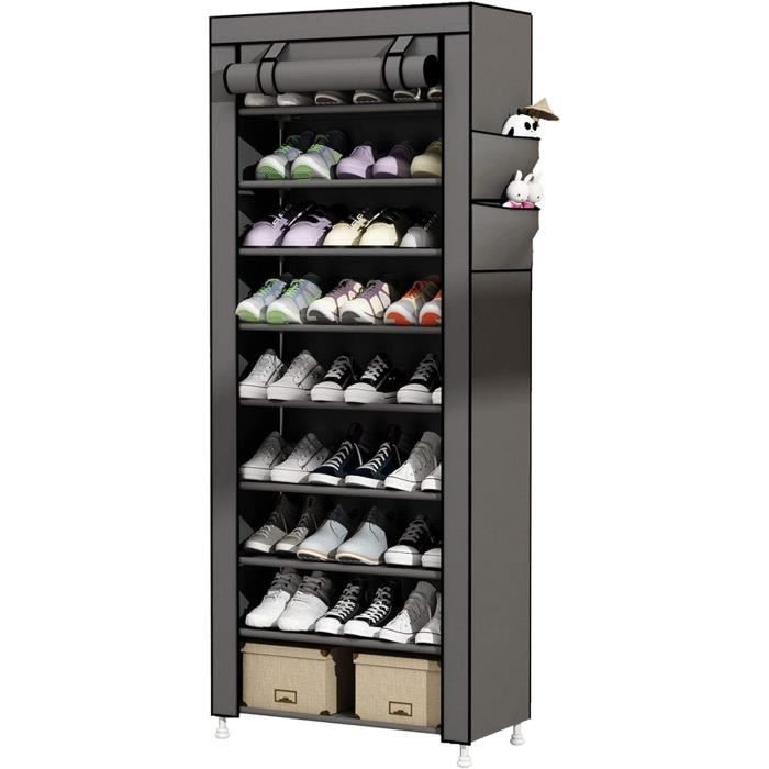 【Sûre et antidérapante】 L'étagère à chaussures a un design antidérapant avec un motif de barre horizontale pour garantir que ni l'étagère à chaussures ni les chaussures ne glissent vers le bas. Design très convivial. Range Chaussures Gain De Place YRHome Lot De 50 étagères à Chaussures Réglables En économie D'espace Placard Étagère à chaussures modulable en métal Nyana Home jusqu'à 32 paires 129x90x27cm, 6 poches... Sûr et antidérapant : Design de surface antidérapante, les chaussures ne glissent pas en haut ou en bas, sûr et durable. Ces étagères à chaussures peuvent contenir toutes les chaussures, talons aiguilles, talons hauts, baskets, pantoufles ou sandales en un coup d'œil. La hauteur peut être ajustée en fonction de la hauteur des chaussures. Le matériau PP peut être nettoyé sans odeur et sans moisissure. 【3 niveaux de réglage de la hauteur】La planche supérieure peut ajuster l'angle d'inclinaison en fonction de la hauteur réelle des chaussures. Les coutures sont fabriquées en plastique antidérapant de haute qualité, très durable et léger. En plus de son rangement pratique, l'étagère à chaussures ouverte peut également être utilisée comme étagère de présentation spéciale. Avec ces étagères à chaussures, vous pouvez garder l'armoire à chaussures bien rangée. Il s'assemble en quelques instants grâce à un système enfichable et peut accueillir jusqu'à 30 paires de chaussures, y compris des chaussures hautes comme des bottines ou des bottes, tout en restant stable. Nettoyage facile avec un chiffon humide. Spécifications techniques Dimensions totales (LxPxH) : Environ 100 cm x 29,5 cm x 176 cm Par conséquent, cette étagère à chaussures peut contenir différents types de chaussures, tels que des talons hauts, des chaussures de sport, des pantoufles, des sandales, des chaussures en cuir, etc. 【Économiser de l'espace】Le design intégré à deux couches peut diviser l'étagère à chaussures en deux couches, ce qui améliore l'utilisation de l'espace sans serrer et déformer les chaussures. Placement : La partie supérieure de la chaussure est à l'extérieur et la partie inférieure est à l'intérieur. Étagère à chaussures - YRHOME - 6 niveaux - Noir - Capacité 10 kg - Design contemporain