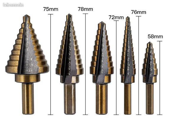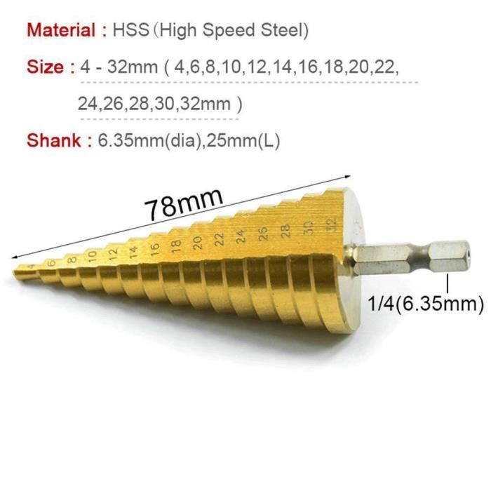 Hi-Spec Lot de 99 Forets HSS en Acier Revêtu de Titane (1-10 ) - Kit... Application : pour métal, métaux non ferreux, plastique, bois Nom du produit : foret étagé en métal avec revêtement en titane , Matériau : métal Perceuse Titane Jeu De Forets étagés En Titane - Test Et Avis Perce Trous 3-12mm Titane L'erreur de mesure autorisée est de +/- 1 à 3 cm., Couleur : doré Perce des trous nets et précis dans les matériaux fins (jusqu'à 1/8 po) suivants : · Le revêtement très dur en nitrure de titane dure jusqu'à six fois plus... Remarque : la couleur de l'article peut varier de celle de la photo en fonction de la luminosité et des paramètres d'affichage de votre ordinateur. Coffret metal 19 forets metaux titane mm