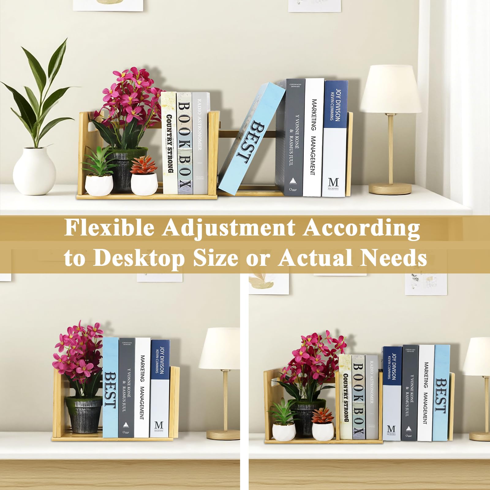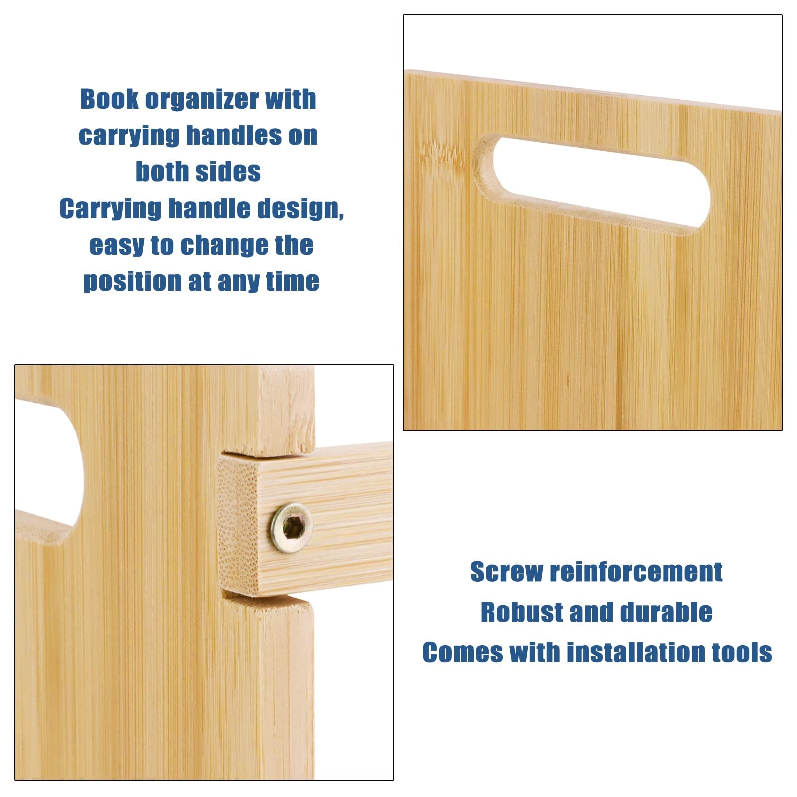Étagère de bureau extensible en bois - Étagère de rangement pour Économie d'espace Nos mini étagère de bureau ont d'excellentes caractéristiques d'économie d'espace, une taille compacte à l'état contracté, ne prend pas trop d'espace ; agrandie avec une grande capacité de stockage pour répondre aux besoins de stockage de différents espaces. Meuble Bureau Compact Déplaçable Bibliothèque De Bureau à 4 étages - Étagère De Rangement Eois Pour Bureau, Maison, école Bureau Extensible Adaptée à un large éventail de situations L'aspect minimaliste de cette extensible bibliothèque de bureau s'adapte à tous les styles de maison. Étagère murale en bois Wit et métal Goud , bibliothèque réglable en hauteur, 3... | bol LAOA Petite Bibliothèque de Bureau, Mini Étagère de Bureau Économie d'espace, Autoportant... 【Facile à installer】Le design simple de cette extensible bibliothèque de bureau répond au besoin de stabilité et d'installation facile. 【Matériau de qualité】 Cette petite bibliotheque est fabriquée en bambou de haute qualité, dur, résistant, pas facile à fissurer, texture claire, aspect lisse, à la fois sain et sûr ; structure solide et robuste, meilleure capacité de charge, ce qui est idéal pour stocker une variété de livres. 【Économie d'espace】Avec cette mini étagère de bureau économie d'espace, vous n'avez plus besoin de vous soucier d'un bureau en désordre, elle peut vous aider à organiser vos livres efficacement et à garder votre bureau propre et bien rangé. Poignée de transport pratique Notre petite bibliotheque est équipée de poignées de transport des deux côtés, conçues de manière ergonomique pour réduire efficacement le fardeau du transport. 【Extensible et portable】Cette mini bibliothèque peut être rétractée d'environ 34-63cm, vous pouvez vous ajuster en fonction de la taille du comptoir ou du bureau, la flexibilité est très bonne ; l'étagère a également une poignée de transport des deux côtés, ce qui facilite la mobilité, c'est une étagère de comptoir très pratique pour les étudiants, qui peut être utilisée comme une bibliothèque de bureau ainsi qu'une bibliothèque portable. Conception extensible Nos mini etagere sont dotées d'une structure extensible qui permet d'ajuster l'espace de rangement en fonction de la taille de votre collection.