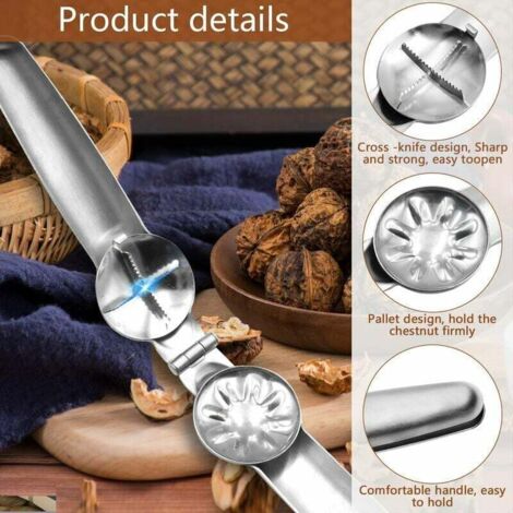Étapes d'utilisation de la griffe de châtaigne: 1., Sortez les pinces à châtaignes et les châtaignes, et pressez les châtaignes avec les pinces à châtaignes 2., Faites une rangée de petites ouvertures 3., Pincez la petite ouverture avec vos mains 4., Décollez une coque de châtaigne 5., Utilisez l'autre côté de la pince à châtaigne pour évider les cerneaux de châtaignes., Avis: 1., Veuillez utiliser un détergent neutre pour le nettoyage et ne pas entrer en contact avec des liquides corrosifs., 2., N'utilisez pas de surfaces rugueuses et d'objets durs pour essuyer et nettoyer., 3., Veuillez laver et sécher à temps après utilisation. Casse- Noisette Châtaigne Clip Acier Inoxydable Nut Cracker Sheller 【Large Application】Si vous souhaitez accéder facilement à des châtaignes entières, nos couteaux à châtaignes sont un excellent choix. Griffe épluchage Châtaigne Pince à Châtaigne Casse-Noix Pince Pour Ouvre-Écrou Coupe-Châtaigne En Pince épluchage Fruits à Coque surface lisse sans blesser votre paume, elle est facile à nettoyer., Étapes d'utilisation : 1., Placez le châtaignes sur la plaque de pression antidérapante et pressez fermement la poignée., 2., Ouvrez la poignée et retirez le marron pour former une ouverture en croix. 【Matériaux de Haute Qualité】Le clip en châtaigne est en acier inoxydable 304 de qualité alimentaire, qui n'est pas facile à déformer et à corroder. Châtaigne Clip, Clip Noix, Métal Nut Sheller, Noyer Pince, Noisettes... C'est un cadeau idéal pour la famille et les amis des amateurs de cuisine idéaux. 【Facile à Utiliser】Placez la châtaigne dans la rainure dentelée et appuyez sur la poignée vers l'intérieur avec votre main pour l'enfoncer facilement. Cet ensemble de châtaignes n'est pas seulement une nécessité quotidienne pour la maison, mais aussi un outil permettant de gagner du temps et du travail pour les boulangeries, les restaurants, les confiseries, etc. C'est un cadeau idéal pour la famille et les amis des amateurs de cuisine idéaux. Fabriqué en acier inoxydable de qualité supérieure... 【Conception Ergonomique】L'ouvre-châtaigne est conçu conformément à l'ergonomie et adopte une conception à levier, facile à utiliser et économisant des efforts. Processus givré, finement poli sans bavures, ouverture croisée pointue, châtaignes faciles à peler, conception de poignée antidérapante, surface ronde et lisse, ne faisant pas mal à la main, confortable à tenir. Rincer à l'eau après utilisation, essuyer avec un chiffon et sécher, utilisation sûre et sécurisée. Spécification Matériau: Acier Inoxydable 304 Couleur: Argent Taille: 17,1 cm × 5 cm Dentelure croisée Uniformément dentelé, peut facilement couper la coque dure du châtaignier. Cet ensemble de châtaignes n'est pas seulement une nécessité quotidienne pour la maison, mais aussi un outil permettant de gagner du temps et du travail pour les boulangeries, les restaurants, les confiseries, etc.