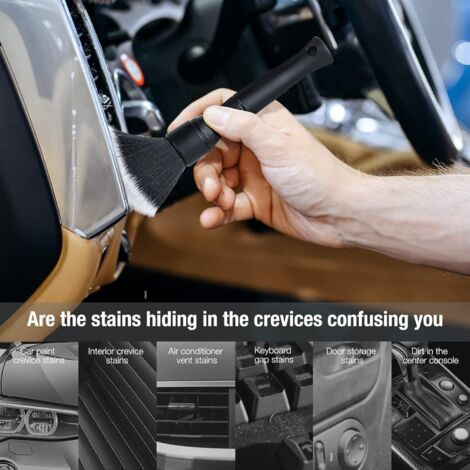 5pcs Pinceaux Nettoyage Voiture, Brosse à Détails La tête de brosse de la brosse d'allaitement peut également être désactivée pour la remplacer par une nouvelle tête de brosse. Pinceau Nettoyage Intérieur Voiture DEXIFUXI Pinceau De Détail, 5pcs Auto Detailing Brush Set, Cleaner Brush Set, Brush Pour La Voiture Moto Roues De Nettoyage Automobile, Tableau De Bord, Intérieur, Extérieur, Bouches D'aération Nettoyage écrans Claviers Spécifications du produit: - Longueur totale: 22,5 cm / 8,85 pouces - Longueur de la poils: 4,5 cm / 1,77 pouces Poids: 46g Étendue de la livraison: 2 * morceaux de brosses de détail Du tableau de bord à la console centrale et à tous les coins et recoins entre les deux, les brosses de nettoyage d'intérieur de voiture sont parfaites pour nettoyer une variété de surfaces intérieures 2Pcs Brosse Douce de Nettoyage D'intérieur de Voiture Large application : nos brosses de nettoyage de voiture ne conviennent pas seulement pour le nettoyage... 【Larges utilisations possibles】 Ces pinceaux conviennent non seulement pour nettoyer différents sites intérieurs de véhicules, tels que les emplacements de ventilation, les écrans, les cartes de raccords, les panneaux intérieurs, les moteurs et les colonnes de siège, mais qui conviennent également à nettoyer les claviers d'ordinateur, les stores, les ventilateurs de plafond, etc. Les poils mesurent 45 mm de long et répondent à leurs besoins quotidiens. d'autres zones qui sont difficiles à nettoyer. - Cette brosse à feuilles de voiture a un contour de poignée ergonomique, une zone de préhension confortable et équilibrée pour minimiser la fatigue de l'utilisateur, et les poils peuvent facilement pénétrer à l'intérieur de votre voiture et éliminer les piles cachées. 【Caractéristiques de conception】 Cette brosse à feuilles de voiture a un contour de poignée ergonomique, une zone de poignée confortable et équilibrée pour minimiser la fatigue de l'utilisateur, et les poils peuvent facilement pénétrer à l'intérieur de votre voiture et éliminer les taches cachées. Caractéristiques du produit: - Les poils doux et fins grattent l'intérieur du cuir et la surface lisse galvanisée et peuvent absorber la poussière perdue pendant le processus de nettoyage; La poignée est en plastique ABS, n'est pas facile à casser, est agréable, est légère et durable et a une longue durée de vie.