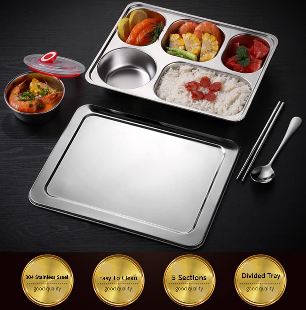 Plateaux rectangulaires divisés - Solutions alimentaires efficaces Plus besoin de mélanger les aliments. Plateau Compartimenté 5 Sections Paquet De 100 Acier Inoxydable 304 Plateau De Dîner Divisé 5 Sections Métal Assiettes À Dîner Plateau De Nourriture Divisé Boîte À Lunch Pour Adultes, Enfants, Contrôle Des Aliments (Argent Plateau Repas Compartimenté Inox 【Conception à 5 compartiments】2 plats principaux et 3 accompagnements. A: Nous nous sommes spécialisés dans la production d'acier inoxydable depuis plus de 20 ans. Les principaux produits sont des ustensiles de cuisine en acier inoxydable, des fournitures d'hôtel et ainsi de suite Vente en gros d'assiettes à dîner divisées en acier inoxydable 304 pour service plateau à 5 compartiments. Commande minimale: 500 pièces. supplier information... Pratiques à transporter, elles vous permettront de profiter d'un pique-nique en plein air. 【Facile à utiliser et à nettoyer】Ces assiettes de service réutilisables sont empilables pour un rangement facile. 【Larges applications】Les assiettes divisées en acier inoxydable 18/10 sont idéales pour le camping, les pique-niques, les voyages, sur un bateau, les collations, les repas complets, les déjeuners, la maison, la cuisine d'entreprise, le restaurant, l'école, la cafétéria, l'institution, les utilisations quotidiennes intérieures ou extérieures. Facile à nettoyer et réutilisable pour une utilisation prolongée. Dimensions : 28 cm x 22 cm x 4 cm, 5 compartiments. Matériau : Acier inoxydable Couleur : Argent Dimensions : 28 x 22 x 4 cm Contenu : 2 x Plateaux à Assiettes Rectangulaires Divisés en Acier Inoxydable 304 Caractéristiques : 1., Fabriqué en acier inoxydable de haute qualité, sûr, sain, durable, antirouille et résistant à l'usure., 2., Idéal pour le camping, les pique-niques, les sorties en bateau, les collations, les repas complets, l'école, et pour une utilisation quotidienne à l'intérieur ou à l'extérieur.