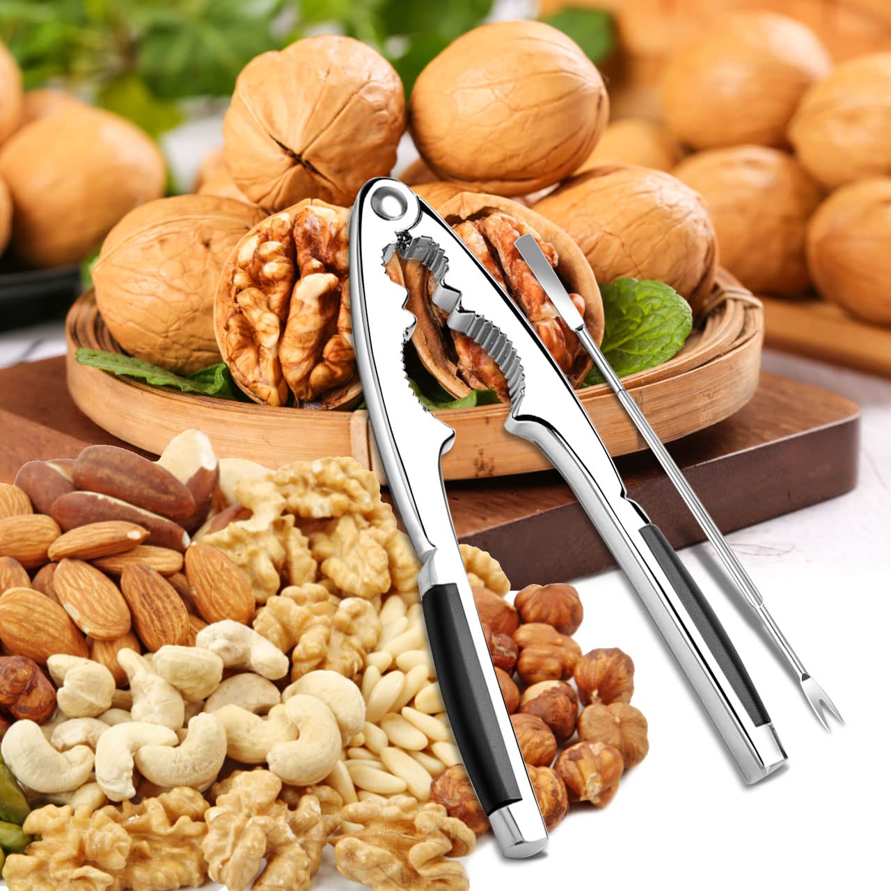 Accessoire Cuisine Durable Outil Cuisine Noix Crabes Casse-noisettes VITA PERFETTA En Métal - Poignées Antidérapantes Pour Noix Et Fruits De Mer Casse-coquilles Cuisine Casse-crustacés - Pince à Crabe Et Homard Casse Noix Cracker De Coquille Macadamia Opener, Poignée En Métal... Casse Noix Casse-noix Multifonction En Métal - Pince Et Fourchette Incluses - Pour Noix, Fruits De Mer - Poignée Antidérapante Casse-noix Avec Fourchette Son format empilable permet un gain de place dans n'importe quel tiroir de cuisine. Casse Noix Casse-Noisette Multifonctionnel Ouvert Noix De Noix Petit... Entretien et contenu de la livraison : Casse-noix de haute qualité, résistant à la corrosion, compatible lave-vaisselle (panier supérieur), hygiénique et durable. Ce casse-noix durable résiste à une forte pression et vous garantit des années d'utilisation. Prise en main sûre : Ses rainures profondes et son revêtement en caoutchouc souple assurent une prise ferme, même avec les mains mouillées. Matériaux et durabilité :Casse-noix pour noix de haute qualité, fabriqué en zinc robuste avec des poignées antidérapantes en polypropylène pour une manipulation sûre et un cassage efficace des noix.