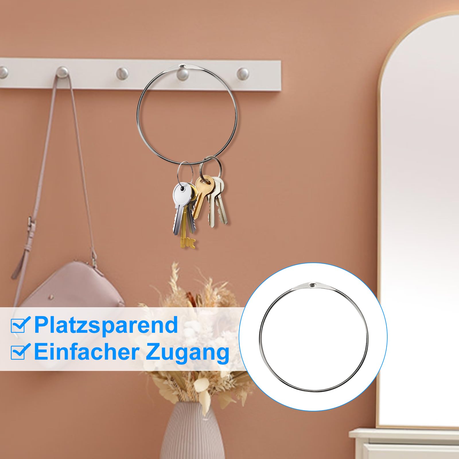 Investissez dans notre ensemble d'anneaux métalliques et découvrez comment l'ordre et l'efficacité entrent dans votre vie quotidienne. Matériau de qualité supérieure] Ces porte-clés en métal sont fabriqués en métal de haute qualité avec une finition en nickel, léger, robuste et durable... Facile à utiliser : équipé d'un mécanisme d'ouverture et de fermeture efficace, les anneaux sont faciles à manipuler. Ces anneaux sont non seulement pratiques, mais aussi extrêmement adaptables. Anneaux Porte-clés 80mm OMJMYY 4 Pack Grand Anneau En Métal Polyvalent,Porte-Clés De 150 Mm,Anneau De Classeur,Anneau Articulé,Anneaux De Rideau De Douche Pour Rideau Douche Accrocher Clés Serviettes Scrapbooking Lot 5 Anneaux 80mm Fermeture Rapide Construction robuste : fabriqués en acier inoxydable robuste (4 mm d'épaisseur), ces grands anneaux métalliques offrent une capacité de charge et une durabilité maximales. Découvrez la solution ultime pour l'organisation et la polyvalence avec notre lot de cinq grands anneaux métalliques à dégagement rapide. Utilisation polyvalente : obtenez cinq anneaux métalliques de 80 mm de diamètre, parfaits pour une grande variété d'utilisations. Ils peuvent être ouverts rapidement pour retirer ou ajouter des objets et se ferment en toute sécurité pour éviter une ouverture accidentelle. Parfait pour accrocher des clés, des maillots, des cravates ou des notes. Fabriqués en fer métallique brillant durable et d'une épaisseur de 4 mm, ces anneaux offrent une capacité de charge exceptionnelle et sont conçus pour durer. Ils peuvent être utilisés dans une variété d'environnements, de votre maison aux paramètres professionnels tels que les bureaux et les écoles. Autocollant décoratif fonctionnel pour rangement des vêtements adhésif durabl - Les autocollants muraux conviennent pour nettoyer et des murs lisses et des... Ces anneaux de 80 mm de diamètre sont parfaits pour accrocher ou attacher une variété d'objets en toute sécurité et avec style. Adaptabilité et confort : la grande capacité des anneaux permet de contenir plusieurs objets en même temps, ce qui les rend particulièrement utiles pour les gestionnaires immobiliers, les enseignants et les créatifs. Neikafan 6 PCS 120mm Grand Anneau Porte Clé et 12 PCS 30mm Métal Anneau Porte Clef Metallique Porte-Clés Organiseur De Clef pour pour Accrocher Les Clés,Vêtements,Rideau De Douche