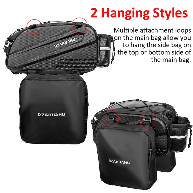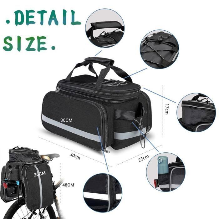 Cet ensemble de vélo comprend un sac principal de porte-bagages arrière et deux sacs suspendus latéraux pour fournir une capacité de stockage L pour les... L'extension de 200 % de longueur le rend extensible jusqu' 76,2 x 76,2 cm pour couvrir autour de votre cargaison, colis et bagages pour plus de s curit lorsque vous roulez sur des routes plus rudes Panier Vélo Arrière Accessoire Vélo,sac De Coffre étanche Pour Vélo, Vtt, Porte-bagages De Voyage, Sacoche De Selle Sacoche De Porte De Vélo SACOCHE VELO,no 2 Side bag--porte vélo 3 en 1 étanche, sac de siège