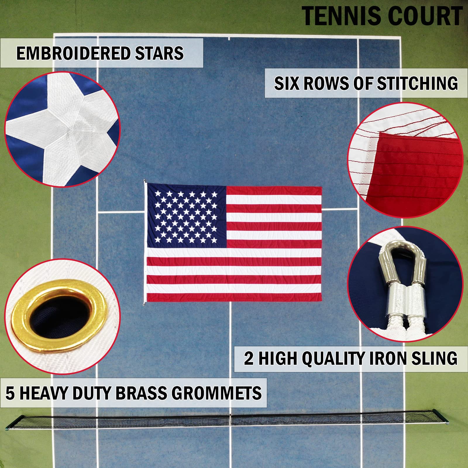 Drapeau Américain 50 Etoiles Brodées en Coton - Label Emmaüs Affichage sans effort : habillez votre espace avec le drapeau américain rose : facile à installer et à enlever avec des boutonnières métalliques robustes. Le design anti-décoloration et à séchage rapide préserve les couleurs vives, assurant un charisme durable dans chaque écran Drapeau Extérieur Résistant Intempéries œillets Laiton Drapeau Américain De 1,8 X 3 M, Fabriqué Aux États-Unis, Quatre œillets En Laiton, étoiles Brodées, Rayures Cousues, Drapeaux Américains D'extérieur Robustes Et Durables à Suspendre Pour Drapeau Patriotique Résistant Intempéries Que ce soit pour votre maison ou votre entreprise, ce drapeau est conçu pour résister à une utilisation intensive et aux conditions météorologiques difficiles. Sa construction durable garantit que les couleurs vives et le design emblématique resteront intacts et vifs, même lorsqu'ils sont exposés aux éléments. Le drapeau américain en coton est fièrement fabriqué aux États-Unis, assurant une qualité et un savoir-faire exceptionnels pour une exposition durable en... Montrez votre fierté patriotique avec les étoiles brodées les plus fortes et les rayures cousues. Ce drapeau est conçu pour durer, vous permettant d'afficher fièrement votre esprit américain année après année, sans vous soucier de la décoloration ou de l'effilochage. Mettez la main sur ce drapeau de haute qualité aujourd'hui et transformez votre espace extérieur en un symbole de fierté américaine Avec ses étoiles brodées impressionnantes, ses bandes cousues et son design résistant aux intempéries, ce drapeau américain d'extérieur est un incontournable pour tous ceux qui cherchent à célébrer leur amour pour les États-Unis.