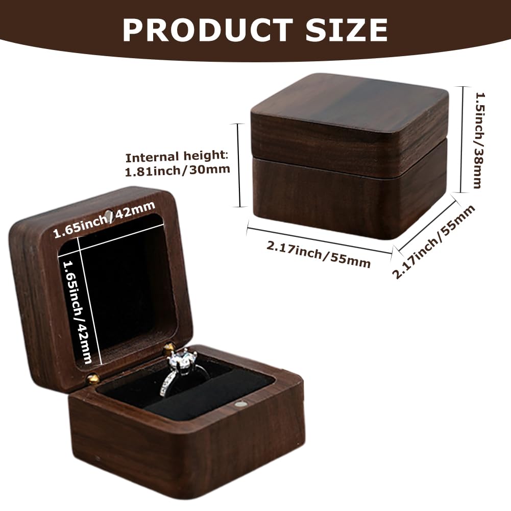 Fabrication artisanale exquise : la boîte à bagues en bois a été polie et polie de nombreuses fois, avec des coins lisses et arrondis. 1 pcs Boîte à Bague Vintage en Noyer Massif, 5,5x5,5x3,8cm Intérieur Doux en Velours, Écrin à Bague Fait Main pour Mariage, Fiançailles, Demande en Mariage... Large application : l'étui à bagues est parfait pour les propositions, les fiançailles, les mariages et plus encore. Contenu de l'emballage : 1 boîte à bagues de mariage (bagues non incluses) Boîte à Bijoux Petit Format Luxe Korysnew Boîte à Bagues De Mariage Vintage En Noyer Massif Avec écrin Bois Noyer Velours Noir Grâce à sa taille de lui, elle peut être rangée dans la main ou dans la poche. Chaque boîte est unique. La boîte à bague de fiançailles est équipée d'aimants puissants cachés et d'un design rainuré, et le couvercle est bien fermé pour éviter que l'anneau ne tombe. Il peut également être une vitrine à bijoux pour un magasin de bijoux ou une foire commerciale. Elle peut également contenir des bagues en diamant, des boucles d'oreilles, des broches et plus encore Dimensions : 5,5 x 5,5 x 3,8 cm (intérieur : 4,2 x 4,2 cm) Le cadeau parfait - Que ce soit pour : Fiançailles ou mariage. La combinaison du velours et du noyer fait de cette boîte un accessoire élégant pour votre mariage Boîte à anneaux en bois : Fabriqué en bois de noyer,la boîte à anneaux de mariage est durable et lightable.On peut voir la structure du bois sur la surface Protection avec style : la doublure intérieure en velours de qualité supérieure protège les bagues et les bijoux contre les dommages et donne une sensation de luxe à chaque ouverture. Le meilleur cadeau pour elle : la petite boîte à bagues est une boîte cadeau étendue pour votre amoureux, mère, petite amie, fille, collègue, ami ou toute autre femme spéciale dans votre vie. Lot de 5 boîtes à bagues vintage en bois de noyer massif - Carrées