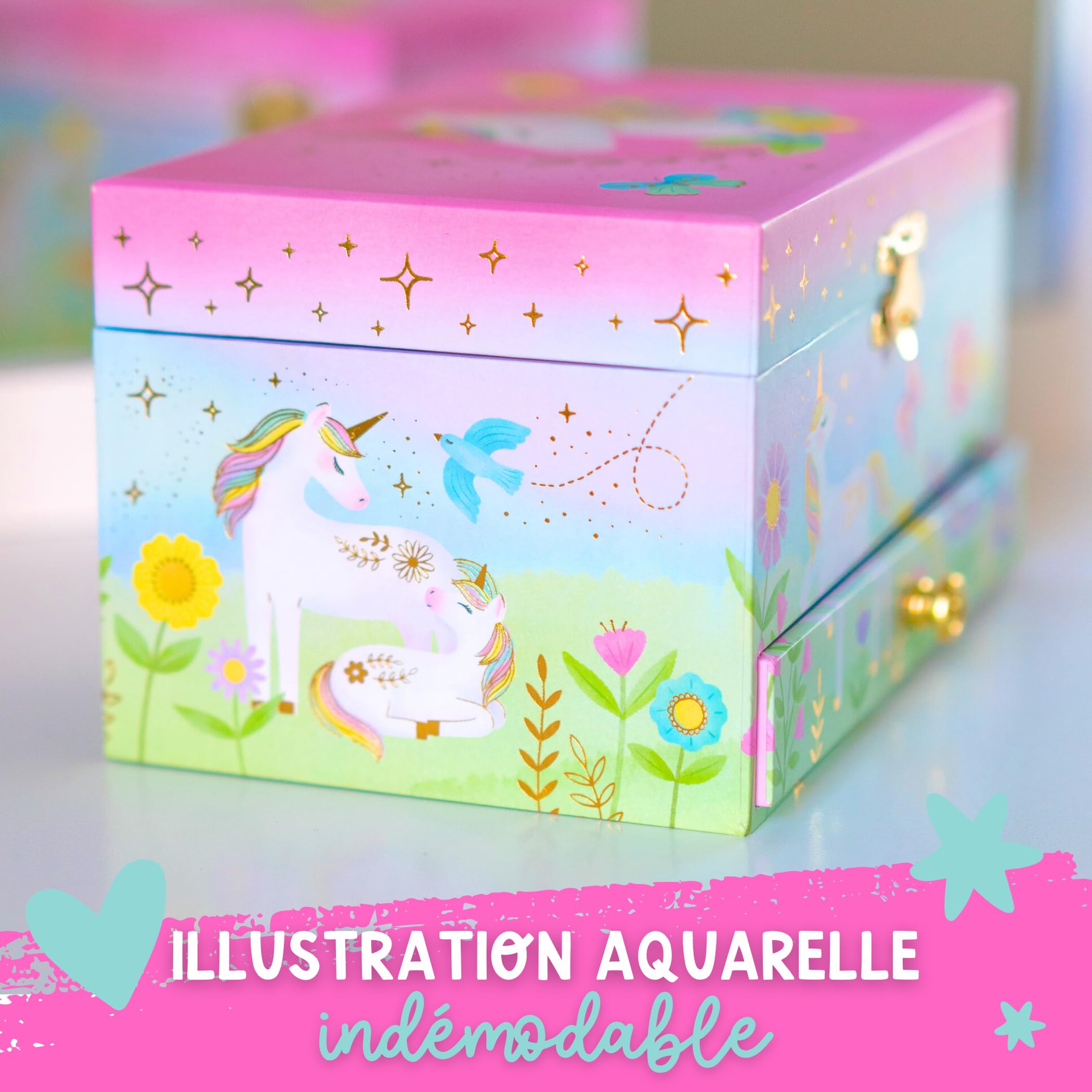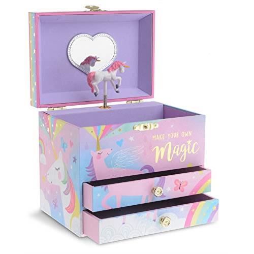 Boîte Bijoux Enfant Licorne Boite à Bijoux Musicale Filles Boîte Boite à Bijoux Licorne avec Musique Boite A Bijoux Musicale Fille Boîte à Bijoux Musicale Licorne Avec Tiroir - Lola Schifrin - Unicorn Boîte à Musique Licorne Avec Tiroir Tournez la manivelle, ouvrez la boîte et surprise, une danseuse finement sculptée tourne et se reflète sur un miroir silhouetté au son de la musique Histoires... Une ravissante boîte à bijoux en bois au motif licorne qui fera le bonheur de toutes les petites coquettes. À l’ouverture, un petit cœur se met à tourner et une douce mélodie retentit. Avec miroir intérieur, petit tiroir pratique pour les trésors et fermeture à clé. Cadeau idéal dès 3 ans. Mécanisme musical, miroir, tiroir à bijoux, design enfant avec licorne