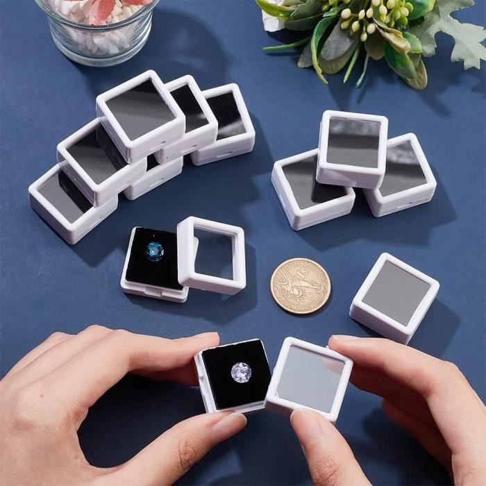 BENECREAT 2 Paquet 36 Grilles Boîte de Rangement en Plastique Organisateur de Bijoux avec... Chaque boîte est équipée d'un noyau intérieur en éponge pour éviter les rayures sur vos pierres précieuses , [Taille] --Environ 39., 5mm de diamètre, 19mm de hauteur, 36., 5mm de diamètre interne, et la fenêtre supérieure mesure 25×25., 5mm Cette forme géométrique unique est non seulement esthétique, mais offre également des effets de visualisation multi-angles pour les éléments affichés. Boîte Présentoir Pierres BENECREAT 12 Pcs Boîte De Présentation De Pierres Précieuses Noires Mini Boite A Bijoux [L'emballage comprend] --Vous recevrez deux boîtes de présentation de pierres précieuses en aluminium argenté avec couvercles en verre, qui peut clairement mettre en valeur les détails des éléments à l'intérieur. [Utilisation large]: Idéal pour les sculptures, la fabrication de bijoux, l'emballage de pierres précieuses et d'autres projets d'artisanat de bricolage; Il est également doux d'estamper des lettres et des symboles simples pour compléter vos travaux de conception BENECREAT 2 boîte de mini pierres rondes blanches 39., 5 × 19mm , Petite boîte de présentation pour diamants ou pierres précieuses en vrac, Présentoir à bijoux avec couvercle en verre et intérieur en éponge pour pierres précieuses et pièces de cristal Cette boîte à bijoux, qu'il soit placé sur un comptoir de bijoux, Etagère d'exposition, ou utilisé comme élément d'emballage cadeau, accentue parfaitement la valeur et la délicatesse des articles Benecreat Lot de 10 boîtes à tiroir en papier kraft noir 24 x 12 x 4 cm