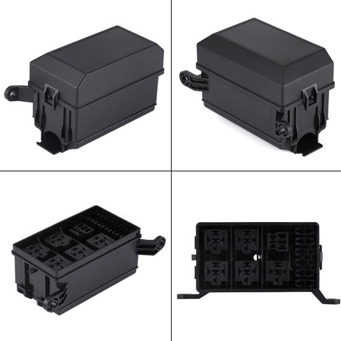 Bloc Fusible Automobile Camping-car Boîte à Fusibles Automobile à 3 Voies + 1 Prise De... – Grandado Installation électrique Véhicule Fusible Voiture,Boîte à relais filaire 12 voies 12V,5 broches,porte Relais de boîte à fusibles à 6 voies Boîte de porte-fusibles 6 voies... Fonctionne à une température de -20 à 130 degrés, connecteur étanche. Facile à installer et normes strictes de contrôle de qualité. Matériau : PA66 et métal. Universel pour RV/Bateau/Tanker/Remorque/Marine/Camion/VUS/Camper/Vélo/Yacht/Voile/Camping-car. Caractéristiques : Matériaux : PA66 et métal. Contenu du paquet : 1 Lot de 5 boîtes de relais fusibles. Remarque : En raison de la mesure manuelle, il peut y avoir une différence de 1 à 3 mm. Porte-fusibles à 4 broches/5 broches 12 voies et 4 blocs de relais pré-installés pour systèmes électriques de véhicule 12 V-24 V Caractéristiques : Quatre relais indépendants peuvent contrôler quatre types d'équipements, tels que l'éclairage de voiture, l'essuie-glace, le klaxon et le réflecteur électrique de recul en même temps
