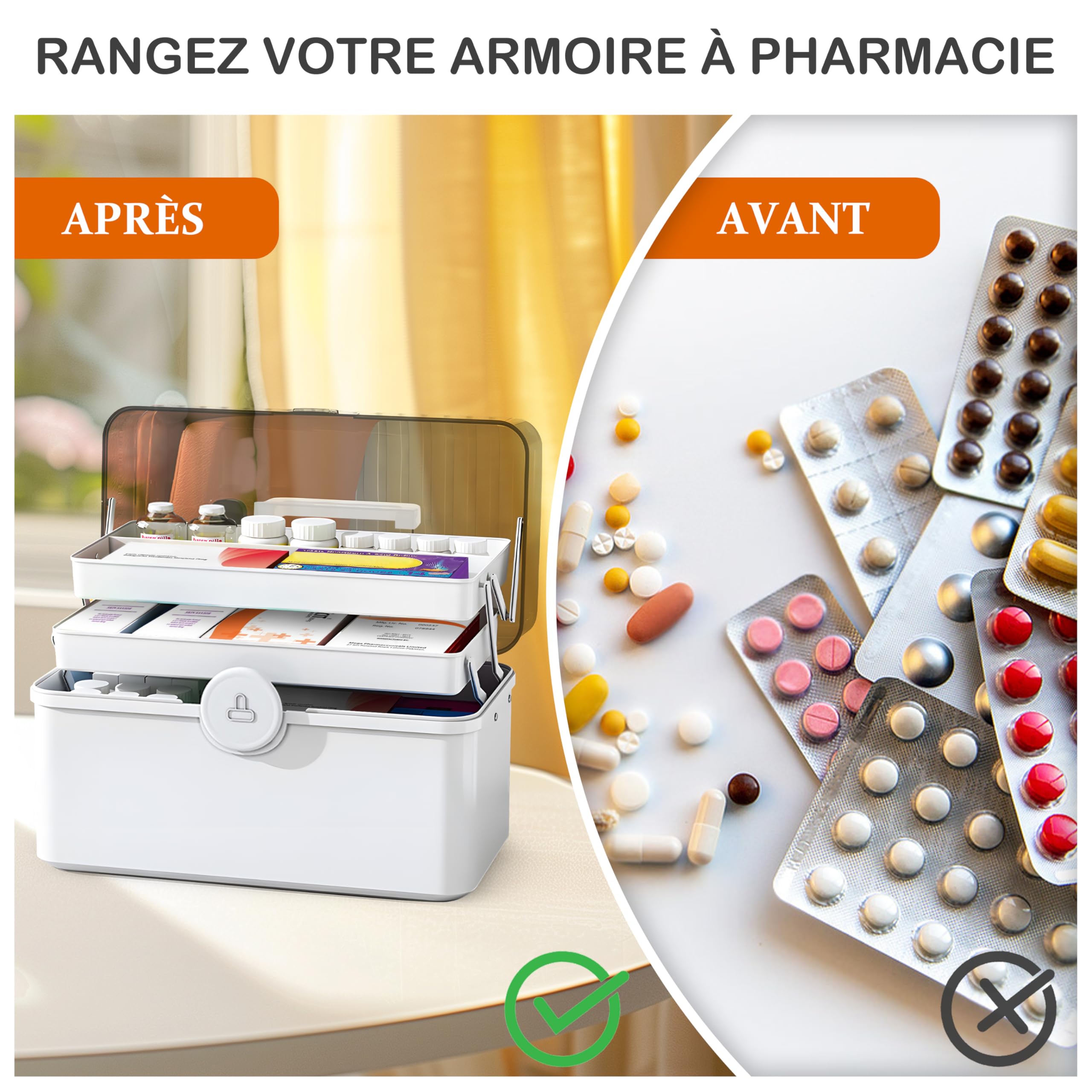 Transport de médicaments par tube pneumatique pour pharmacie Glosen Boîte à Pharacie avec code, Boîte de Rangeent édicale, Boite... Organiseur Médicament Sécurisé Pour Famille TUKA-i-AKUT 3X 14,6L Boîte à Médicaments, Portable à Deux Couches Avec Poignée De Transport, Armoire à Pharmacie, Boîte De Premiers Secours, Boîte De Rangement Pour Médicaments, TKD6402-XL Rose Boite De Rangement Pharmacie 【Grande capacité de stockage】Boite pharmacieà médicaments est dotée d'un système de séparation à trois niveaux, permettant de ranger facilement médicaments et de les classer clairement, garantissant ainsi localisation et un transport rapides en cas d'urgence. En cas d'urgence, il suffit de la tourner et de la saisir, et le tour est joué ! Boîte Médicament Plastique Boîte à Pharmacie Boîte de Premiers Secours... 【Verrouillage sécurisé】Cette boîte à médicaments est dotée d'une poignée portable et d'une boucle à ouverture rapide pour une ouverture instantanée. Grâce à son corps épais et renforcé, elle résiste aux ouvertures et fermetures fréquentes et au transport quotidien. Elle protège la qualité des médicaments, prévient la propagation des odeurs, maintient la fraîcheur de l'environnement, empêche les enfants et les de compagnie d'ingérer accidentellement les médicaments et améliore la sécurité. 【Rangement hermétique】Boite rangement medicament à médicaments est étanche à l'humidité et antisalissure.