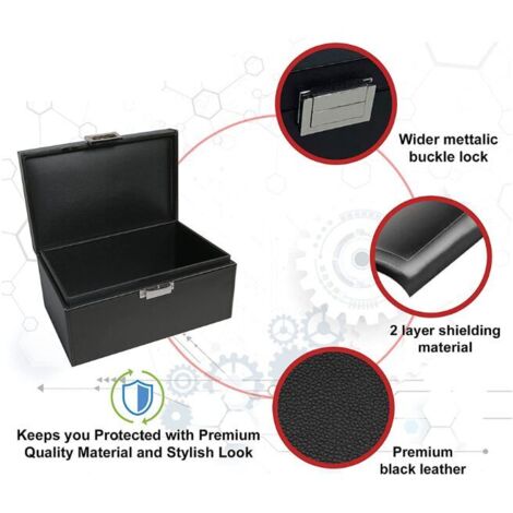 Le tissu intérieur est fabriqué en tissu double blindage de haute qualité qui garantit une meilleure isolation du signal. Protégez votre voiture avec notre boîte de blocage du signal Faraday, qui peut empêcher les voleurs de utiliser des outils d'écrémage du porte-clés pour copier ou imiter le signal unique de votre porte-clés et le code sans fil pour accéder à votre véhicule ou à votre système d'entrée sans clé. 【Protégez votre voiture – Grande boîte de blindage de signal】: les criminels utilisent des outils d'écrémage de porte-clés pour copier ou imiter le code de signal unique de votre clé à distance pour accéder à votre véhicule ou au système d'entrée sans clé. La boîte de protection de clé fournit un bloqueur de signal complet pour votre porte-clés de voiture et fournit une protection antivol contre les criminels. POURQUOI CHOISIR NOTRE BOÎTE DE BLOCAGE DE SIGNAL? Coffret cadeau Faraday parfait - De haute qualité et aspect élégant, il est très beau à placer dans votre maison ou votre voiture. GRATUIT POUR UN SAC FARADAY, pochette de blocage de signal de clé de voiture Nos pochettes Faraday sont fabriquées en tissu de protection RF double couche entièrement enveloppé à 360 ° de haute qualité, durable, imperméable, qui peut être transporté avec vous dans votre poche. C'est un moyen le plus simple et le plus simple de garder votre voiture en sécurité, donner la tranquillité d'esprit lorsque vous dormez la nuit! Notre boîtier de blocage de signal a une fonction de blindage plus forte, après avoir fermé le boîtier de blindage du signal, qui peut bloquer 100% tous les signaux pour protéger votre véhicule. Pochette Faraday Crochet en alliage de zinc sur le dessus pour accrocher sur un jean ou un sac à dos, chaîne intérieure de sécurisation des clés facile à entrer ou à sortir de votre véhicule. Le cadeau de sécurité est un excellent cadeau qui sera bien reçu, vous protège des rayonnements électromagnétiques. Boîte Antivol Anti RFID & Lot de 2 Signal Blocage Faraday Pochette Sac, pour Entrée sans Clés de... La taille de la pochette est de 13 x 8,2 cm, cette boîte anti-vol a la même fonction que la pochette bloqueur de signal, ce qui peut empêcher le vol de véhicule. Le tissu extérieur de cette boîte à clés RFID est fabriqué en cuir PU de haute qualité, lisse au toucher et portable. La boîte de blocage de signal de clé de voiture NESTLING vous permettra de stocker non seulement votre clé mais aussi votre carte bancaire, téléphone portable, tout appareil Bluetooth, que toute votre famille les données financières sont protégées. Cette pochette de blocage de signal a la même fonction que la boîte anti-vol, placez le porte-clés dans la poche intérieure et fermez le rabat, pochette bloque efficacement le signe de voiture sans clé entrant fob - ne pouvait pas ouvrir vos voitures ni les démarrer lorsque les porte-clés sont dans la pochette et il est fermé. Gardez vos clés intelligentes dans une poche faraday et révèle le signal de quitter ou d'atteindre l'appareil à l'intérieur du sac, ce qui peut empêcher le vol de véhicule. Boîte Faraday pour Clés de Voiture Cuir Faraday Clé 【Garantie de qualité】 : notre boîte de blocage de signal en cuir de qualité supérieure pour clés de voiture vous permet de garder une longueur d'avance sur tous les voleurs de voiture. Diyife Boîte Faraday [Cuir de qualité supérieure] Boîte Faraday de petite capacité pour clés de... Pas besoin de considérer le modèle et la marque. Faraday Boîte Pour Clés De Voiture + Sacs Faraday, Boîte De Blocage De Signal De Clé De Voiture Boîte Faraday Clé Voiture Également incluse avec votre achat est une pochette de blocage de signal à emporter avec vous lorsque vous voyagez ou stockez des articles supplémentaires. Boîte de blindage de signal Votre voiture en toute sécurité, tranquillité d'esprit. Les pochettes de clés RFID bloquent tous les signaux pour tous les appareils qui peuvent être installés. Nous utilisons un tissu de protection double de haute qualité, un blindage 100% du WiFi (2,4 et 5 GHz), Bluetooth, des signaux de téléphone portable, des réseaux 5G, GPS, RFID et des signaux pour les clés de voiture. Lorsque vous sortez ou dormez, vous n'aurez plus jamais à vous soucier du piratage du signal