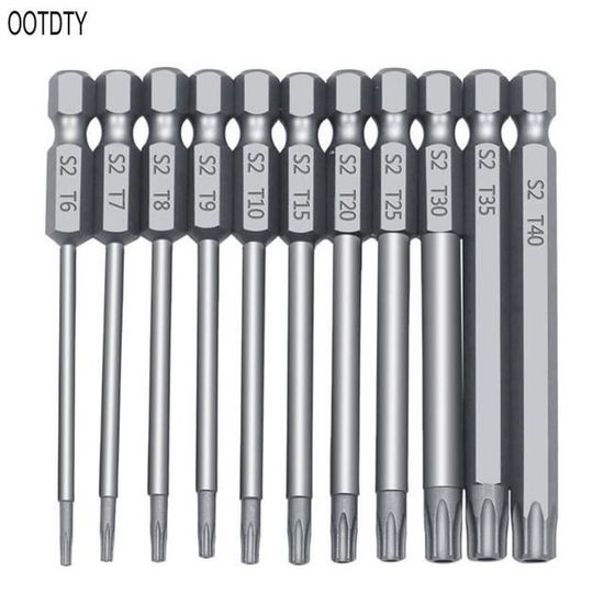 【Queue hexagonale 1/4 pouce】Chaque embout Torx 5 pans mesure environ 50 mm de long. 【Fabrication de haute qualité】Le jeu d'embouts Torx est fabriqué en acier S2 de haute qualité avec un revêtement antirouille mat, des repères de taille et des pointes magnétiques. 【Conception magnétique】Les embouts Torx sont dotés de têtes magnétiques qui serrent et fixent facilement les vis, assurant une connexion stable avec le tournevis. Idéal pour un large éventail d'applications, de la réparation automobile à la rénovation, cet ensemble est un outil indispensable pour tout artisan. 33x Tournevis Sécurité Star Torx Embouts Bit Drill Réparation +Magnétique Holder QK40943 Disponibles en 12 tailles métriques : T5, T6, T7, T8, T9, T10, T15, T20, T25, T27, T30 et T40., Ils répondent aux besoins d'utilisation variés et offrent une compatibilité optimale. Leurs têtes magnétiques facilitent le travail en maintenant fermement les vis, tandis que leur poignée ergonomique offre une prise en main confortable. Pack de 12 - Embouts de Vis Torx 5 Côtés - Embouts de Sécurité Torx Magnétiques 1/4 pouce - Tournevis de Sécurité Étoile Magnétique BST T5 T6 T7 T8 T9 T10 T15... 【Utilisations polyvalentes】Convient aux tournevis électriques, aux tournevis manuels, aux perceuses et aux forets standard. Fabriqués en acier S2 de haute qualité, ces embouts garantissent durabilité et fiabilité. Le manchon en acier haute dureté améliore la capacité de tournage pour des performances optimales. Embouts Torx Sécurité Lot De 12 Embouts De Tournevis à Tête Torx T5 T6 T7 T8 T9 T10 T15 T20 T25 T27 T30 T40 Taille 5,1 Cm Longueur 6,35 Mm Tige Hexagonale S2 En Acier Embouts Acier S2 TOURNEVIS MAGNÉTIQUE TORX - T-40 Facile à retirer, idéal pour un assemblage efficace.