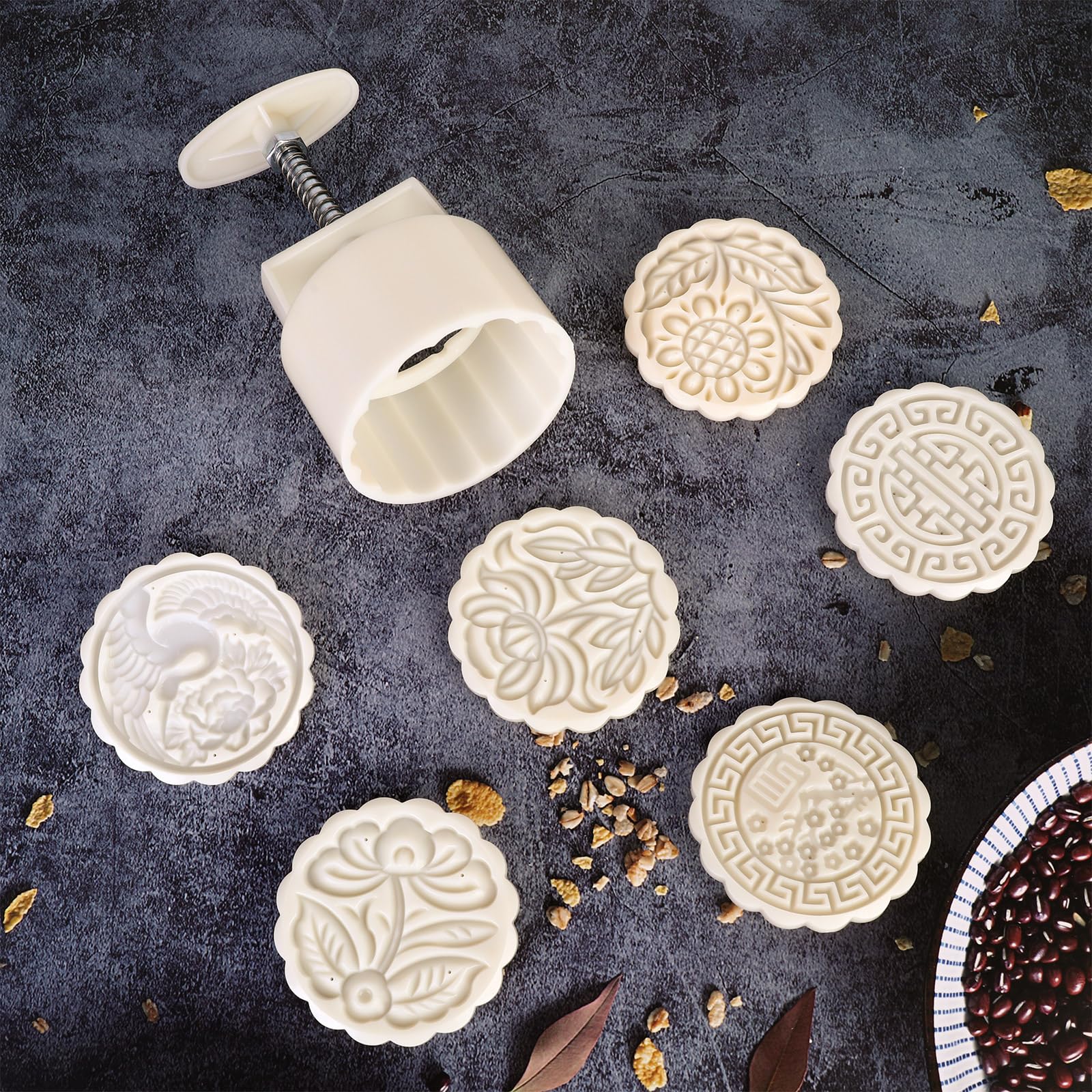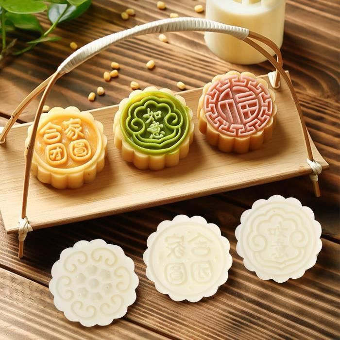 Mooncake Lot de 6 moules à gâteau de lune avec 6 tampons Blanc 50 g Makrout Tampon Zyluniy Moules à Gâteau De Lune, Moule à Lune Gâteau Mooncake Moule à Mooncake C'est une fête hyper importante dans la culture chinoise : on célèbre la pleine lune, la famille, et on s'offre des mooncakes en signe de... 【6-in-1 Mooncake Mould Press avec motifs floraux】Ce kit de presse à gâteau de lune de haute qualité contient 6 tampons floraux différents pour réaliser de magnifiques gâteaux de lune - parfaits pour votre fête de la lune ! Moule à gâteau de lune : Ce moule est utilisé pour faire des gâteaux de lune ronds. Il convient pour 50 grammes de gâteaux de lune. Il est fabriqué dans un... 【Polyvalent dans la cuisine】Pas seulement pour Mooncake Mould Press, mais aussi idéal pour les biscuits, le chocolat et les pâtisseries - le moule à biscuits parfait pour les cuisiniers créatifs. 【Qualité premium réutilisable】La presse à gâteaux en plastique ABS et en acier inoxydable est compatible avec le lave-vaisselle et garantit un plaisir durable en pâtisserie.