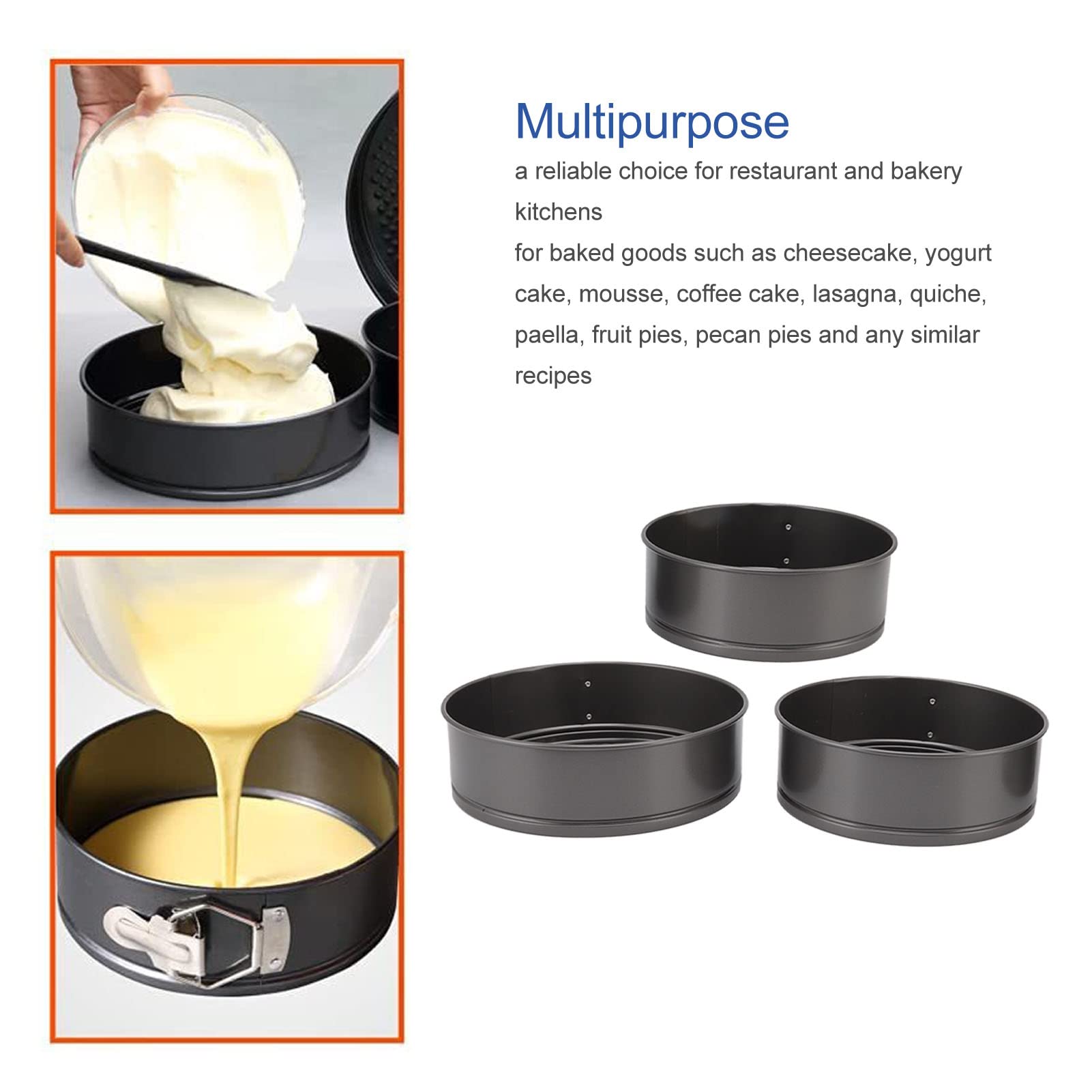 Moules à Charnière Ronds Petit Moule à Gâteau Mini Moules à Gâteau Ronds Pour La Cuisson Des Ustensile Pâtisserie Cheesecake Moule À Manqué À Charnière, 4 Mini Moules À Gâteau Ronds Avec Fond Moule À Manqué À Charnière, 4 Mini Moules À Gâteau Ronds Avec Fond... L'acier inoxydable rend la poêle idéale pour une utilisation directe à la sortie du four Utilisation Polyvalente: Cet moules à gâteaux est polyvalent, y compris le cheesecake, la mousse, le gâteau au yaourt, la quiche, le gâteau au café, les tartes aux fruits, les tartes aux pacanes, les lasagnes, la paella et toute recette similaire Il n'est pas sujet à l'écaillage ou à la fissuration. Spécification : Type d'article : Ensemble de moules à charnière Matériau : acier au carbone, acier inoxydable Liste des paquets : 3 x moules à charnière De plus, ce fermoir à ressort est plus facile à utiliser et plus robuste dans sa construction, ce qui facilite son remplacement Outil de Cuisson Essentiel: Lot de 3 charnière à gâteau ronds est un outil essentiel pour la pâtisserie moderne. Il est capable de préparer des repas parfaits et savoureux avec le bon équipement, ce qui aide à rendre le processus de cuisson fluide 1.[Lot de 3 Moules Antiadhésifs]Ce set de moules à gâteau comprend des tailles de 4 pouces, 7 pouces et 9 pouces, pouvant être utilisés pour préparer des mini-gâteaux, des quiches ou pour réaliser de magnifiques gâteaux doubles ou triples pour toutes les occasions. 2.[Matériau Sécuritaire]Fabriqué en acier au carbone de qualité supérieure avec un revêtement renforcé, le...