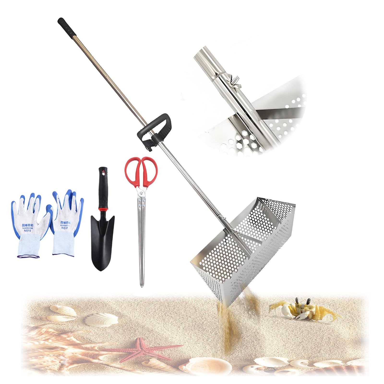 Râteau à puces de sable – Outils de plage durables pour tamiser le sable Sa structure robuste garantit une longue durée de vie, ce qui en fait un compagnon fiable pour toutes vos aventures à la plage. Tamis Puces De Sable Manche Longue Tamis Sable Râteau à Sable, De Qualité Commerciale Avec Longue Poignée Ergonomique Rateau Sable Outil Plage Coquillages Structure en acier inoxydable : fabriqué en acier inoxydable, le tamis à sable de plage est imperméable et antirouille. Râteau à bonsaï - Gloglow - Acier inoxydable - Manche ergonomique... H Pincettes à Bonsaï en Acier Inoxydable Râteau à Presser le Sol Outil... Design de l'hexagon Hole : le râteau à sable présente des trous en forme d'hexagone qui permettent au sable de filtrer tout en capturant les puces de sable et autres petits trésors de plage. Manche longue amovible : le tamis de sable de plage est livré avec une poignée longue détachable et une prise en plastique robuste, ce qui rend facile à transporter et à ranger. Ce design améliore l'efficacité et vous garantit d'obtenir le maximum de chaque râteau. Matériau : acier inoxydable., Dimensions : 1., Tamis à puces du sable : longueur 40 x 17,8 x 20 cm., 2., Manche : longueur 110 cm., Caractéristiques : 1., Manche longue détachable : ce tamis de plage est doté d'une poignée détachable de 110 cm de long et d'une poignée en plastique robuste pour un transport et un rangement faciles. Le design ergonomique de la poignée offre une prise en main confortable, réduisant la tension lors de l'utilisation et vous permet de ratisser pendant des périodes plus longues sans gêne. Description : Nom du produit: Grattoir à puces de sable., Couleur : argenté.