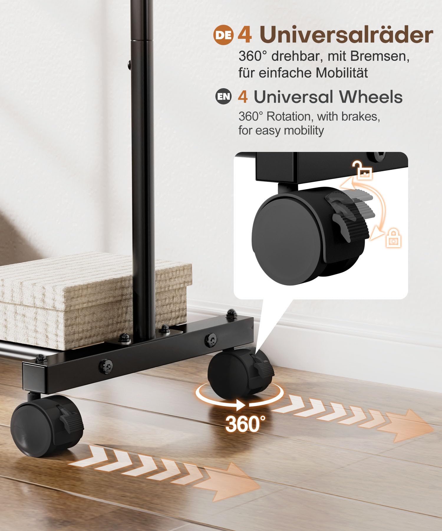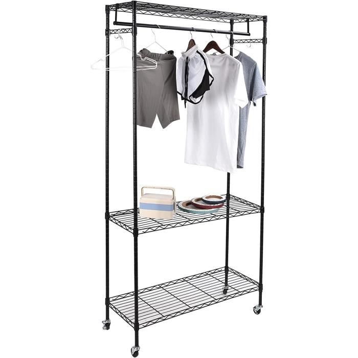 Portant à Vêtements Mobile Roulettes VEVOR Portant à Vêtements En Z Acier Et Inox Porte-Vêtements à Base En Portant Mobile Pour Boutique COSTWAY Porte-vêteents sur Roulettes, Portant à Vêteent en étal avec 2 Étagères, 2 Tringles COSTWAY Porte-vêteents sur Roulettes, Portant à Vêteent en étal avec 2 Étagères, 2 Tringles... Accrochez en toute sécurité des manteaux/robes à la barre en métal de 40 kg ; stockez des chaussures/valises/containers de rangement sur la base à double barre de 45,4 kg Transforme instantanément un placard en rangement de voyage ou un portant à vêtements saisonnier Porte-Vêtements Multi-Espaces pour Maison/Store : Roulez entre la chambre à coucher (organisateur de vêtements), le hall d'entrée (porte-manteau), la buanderie (râtelier à sécher) et la boutique (présentation de vêtements). Portant à Vêtements Robuste avec Capacité de 54,4 kg : Le métal solide supporte 45,4 kg (avec roues) ou 54,4 kg (sans roues). Porte-Manteau à 4 Roues Mobile : Les roues verrouillables déplacent des charges jusqu'à 40 kg en douceur. Assemblage en 15 Minutes avec Outils Inclus : Pièces pré-perforées + outils fournis = montage par une seule personne en moins de 15 minutes. Aucun autre matériel nécessaire - prêt pour les placards de la chambre à coucher, le rangement du garage ou les présentoirs de vente au détail immédiatement Portant sur roulettes - portant à vêtements réglable en hauteur et longueur - dim. 86160l x 45l x 95170h cm - acier inox. 0.0. 0 avis