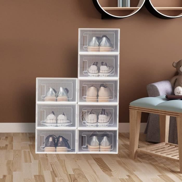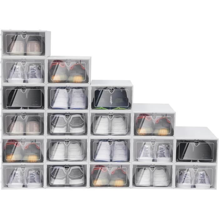 Détails : Vente en forme de cœur : chaque boîte à chaussures est équipée d'une ventilation en forme de cœur, qui est non seulement à la mode et belle, mais favorise également la circulation de l'air et empêche les chaussures de devenir humides et d'odeurs. La boîte à chaussures est transparente, de sorte que vous pouvez trouver directement les chaussures que vous souhaitez porter ou d'autres articles en un rien de temps, ce qui permet d'économiser du temps et de l'énergie. En même temps, la boîte à chaussures convient à différentes scènes, comme elle est placée sous la table et le salon. Il peut également être utilisé comme organisateur et rangement d'armoire, tiroir de rangement et organisateur d'étagère pour les petits objets. L'ensemble de boîtes à chaussures peut contenir des chaussures de moins de 31 cm de longueur et moins de 13 cm. La boîte à chaussures est étanche à la poussière et à l'humidité, évite la scène embarrassante des chaussures qui se salissent et se salissent et protège mieux vos chaussures. Rangement Chaussures Petit Objet LGODDYS Lot De 20 Boîtes à Chaussures Transparentes Empilables - Boîtes Boîtes Chaussures Transparentes Meuble Chaussure Blanc Begoniape Lot De 20 Boîtes De Rangement Pour Chaussures Meuble à Chaussures Matériau de haute qualité : la boîte à chaussures est fabriquée en PP et PC, qui est inoffensif pour le corps et respectueux de l'environnement, de sorte que vous pouvez l'utiliser en toute confiance. Porte : il y a une porte devant chaque boîte à chaussures, de sorte que vous pouvez facilement placer et enlever vos chaussures en un rien de temps. Belle apparence : les couleurs de la boîte à chaussures les rendent attrayantes. Chaque lot contient 20 pièces, fabriquées en plastique de haute qualité, robuste et durable avec des trous respirants pour éviter que les chaussures ne moisissent et gardent votre armoire à chaussures bien rangée et organisée Remarques : Veuillez mesurer la longueur de vos chaussures avant l'achat., 2., La boîte à chaussures ne peut supporter qu'un certain poids si plusieurs colonnes sont reliées vers le haut, le bas, la gauche et la droite, et le nombre de couches ne peut pas être élevé., 3., Veuillez permettre une légère différence de couleur due à la lumière de prise de vue et à une erreur de 1 à 3 cm en raison de la mesure manuelle, et assurez-vous que cela ne vous dérange pas avant de commander. Étape d'installation facile : la boîte à chaussures est simple dans la structure et une vidéo d'installation est fournie. La boîte à chaussures amovible a une surface lisse, de sorte que vous pouvez facilement la nettoyer directement avec de l'eau, ce qui est très pratique. 6 Niveaux Boîtes à Chaussures Boîtes de Rangement Transparente en... Combiné avec des lignes lisses, le produit a une sensation moderne et à la mode et peut s'adapter à une variété de pièces dans différents styles. Il vous suffit de connecter les pièces en suivant la vidéo sans outils de montage, ce qui vous apportera plus de commodité. Chaque taille de produit : 33 x 23 x 14 cm / 13 x 9,1 x 5,5 pouces Type 1 : rose (20 boîtes à chaussures roses) Type 2 : vert (20 boîtes à chaussures vertes) Type 3 : 5 couleurs (4 boîtes à chaussures violettes, 4 boîtes à chaussures blanches, 4 boîtes à chaussures roses, 4 boîtes à chaussures vertes, 4 boîtes à chaussures bleues) Contenu de la livraison : 20 boîtes à chaussures.