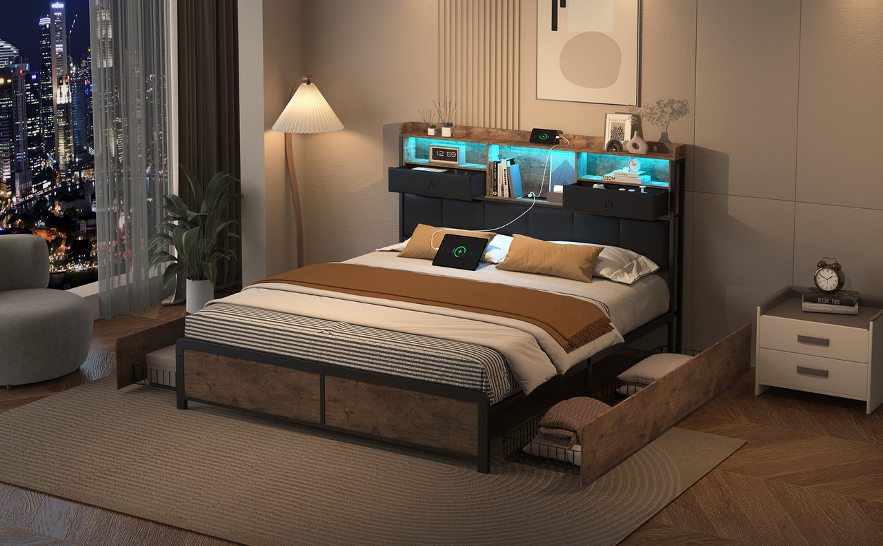 【Design élégant】Contrairement aux lits traditionnels, ce cadre de lit 160 x 200 semble flotter dans l'air grâce à son design spécial, créant une expérience visuelle légère et rêveuse. Lit Coffre Avec Lecteur Bluetooth Lit Plat 140*200cm Avec Sommier à Lattes Et Tête De Lit, Lit LED Avec Port De Chargement Usb Lit Junior Avec 4 Tiroirs Pour Adultes Et Juniors 92197448 Lit Coffre 140x200 Gérez facilement différents modes d'éclairage LED via une application mobile dédiée. Construit avec une structure en acier robuste, ce lit offre une stabilité maximale, vous garantissant une nuit de sommeil paisible. LIVLUX Lit 140x200cm avec éclairage LED et station de charge 【Lit Multifonctionnel avec Ports USB】: Ce lit est conçu pour les temps modernes, intégrant des ports USB dans la tête de lit pour vous permettre de charger vos appareils électroniques comme les téléphones et les tablettes en toute commodité. Intégrant une haute technologie moderne, il offre une expérience visuelle unique Aussi,le rembourrage en cuir PU noir rend votre pièce plus avancée. 【Solution de Rangement Ingénieuse】: La tête de lit offre un espace de rangement caché et des compartiments ouverts, parfaits pour stocker vos besoins quotidiens et vos gadgets électroniques. En plus, un vaste espace de rangement sous le lit est l'endroit idéal pour ranger les vêtements hors saison, les couettes et d'autres objets volumineux. Grâce à son système de levage hydraulique double, ce lit offre un espace de rangement considérable sous le matelas,particulièrement adapté aux petites maisons ou appartements avec un espace limité, résolvant efficacement les problèmes de place dans les petits logements. La barre centrale du cadre est munie de tampons de protection, réduisant les mouvements et les bruits, même si vous partagez le lit avec quelqu'un. Le sommier à lattes est fabriqué à partir de lattes en bois massif pour fournir un soutien confortable pour le sommeil et pour assurer une durabilité accrue de votre matelas. Parmi les caractéristiques les plus fonctionnelles, mentionnons les prises intégrées de la table de nuit, avec ports USB/C, qui vous permettent de recharger vos téléphones mobiles et tablettes avant le coucher. L'ouverture de ce coffre de lit est rendue facile grâce à la conception du levier hydraulique, rendant le rangement plus fluide et sans effort. 【Structure robuste】: La robustesse de ce lit est garantie par un cadre métallique de haute qualité, capable de supporter un poids jusqu'à 250 kg.
