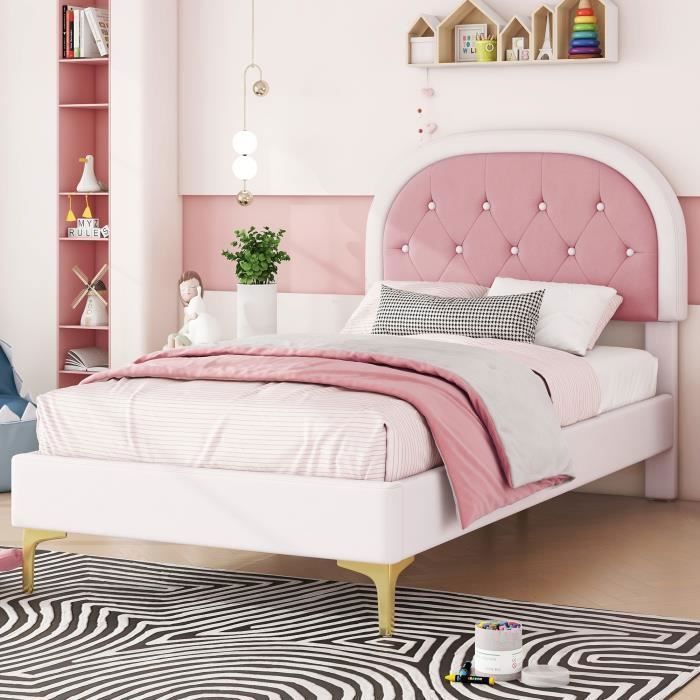 Lit capitonné 90 x 200 cm avec 2 tiroirs et tête de lit rangement... Tête de lit réglable : grâce à la tête de lit réglable en hauteur de 5 cm, les besoins de sommeil de votre enfant peuvent être ajustés avec précision pour créer un environnement de sommeil confortable, quel que soit son niveau de développement. Montage facile : nous fournissons des instructions détaillées et toutes les pièces nécessaires pour que vous puissiez rapidement assembler ce lit fille et profiter de son confort. Lit 70x140 Enfant Lit Enfant 90x200 Avec Sommier à Lattes, Lit Capitonné Avec Tête De Lit Réglable En Hauteur, Pour Fille, En Velours, Rose - Maison Lit Princesse Tête De Lit Réglable LED Éclairage LED multicolore : ce lit rembourré est équipé d'un système d'éclairage LED contrôlable par télécommande et offre plusieurs modes de couleur et options de luminosité. Caractéristiques du produitTête de lit en forme de pouf LED La tête de lit en forme de pouf est l'accessoire parfait pour n'importe quelle chambre et donne vie à l'espace nuit. Ambiance chic et cosy : profitez de la douce lueur de l'éclairage d'ambiance LED qui encadre gracieusement les contours de la tête de lit, créant une atmosphère chaleureuse et invitante, parfaite pour se... Design royal et irrésistible : notre lit enfant fille 90x200cm dispose d'une tête de lit en forme de couronne qui crée une atmosphère onirique dans la chambre de vos petits. Lit Simple Capitonné 90x200 Cm, Avec éclairage LED Et 2 Tiroirs Revetement En Lin Doux Pour La Peau Avec Sommier A Lattes En Bois Adapte Aux Enfants Adolescents Rose 84071130