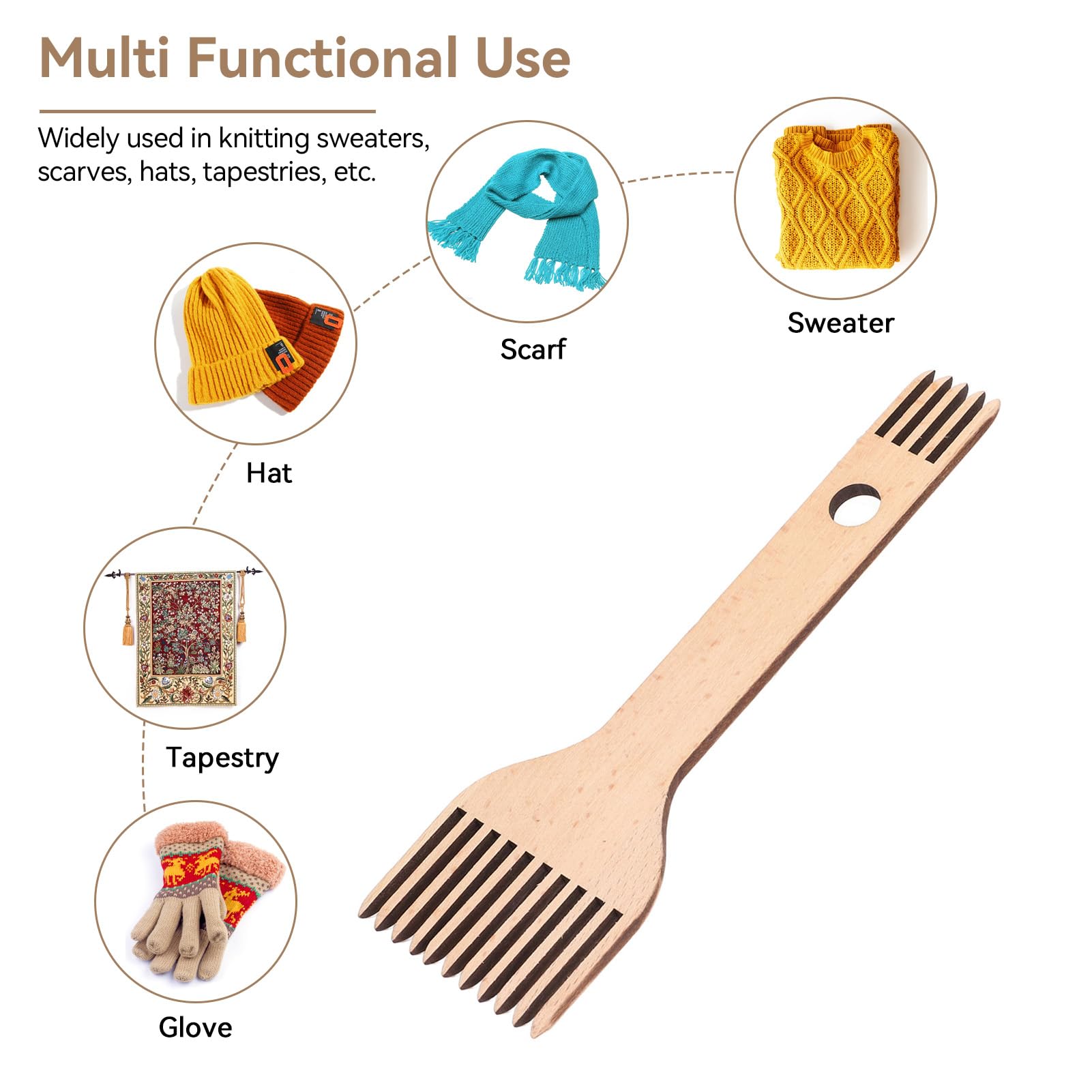 Outil Tissage Double Tête Transformer Un Métier A Tisser à Peigne Rigide En Métier 4 Cadres - Le Peigne Double Tête Tissage Métier à tisser en fil de fer, design ergonomique, libération... TISSAGE avec un métier à peigne rigide 【Haute praticité】Ce peigne à tisser en bois aide à éliminer les fibres lâches et à redresser les fils de coton, laissant une texture douce. Pegne pour méter à tsser, Matérau en bos, Surface sans bavures... 【Large application】 Ce peigne à tisser en bois est largement utilisé pour tricoter des pulls, des écharpes, des chapeaux, des tapisseries, etc. 【Double extrémité】Ce peigne à tisser en bois a une conception à double extrémité qui peut facilement brosser les nœuds les plus durs de n'importe quelle corde de dentelle artisanale pour obtenir un beau look frangé sur la dentelle. La surface lisse est très sûre. Spécification :Type d'article : peigne à tisserMatériau : hêtreSpécifications du produit : 1 pièceApplication : usage domestiqueChamp d'application : la plupart des scénarios / Taille du produit : env.