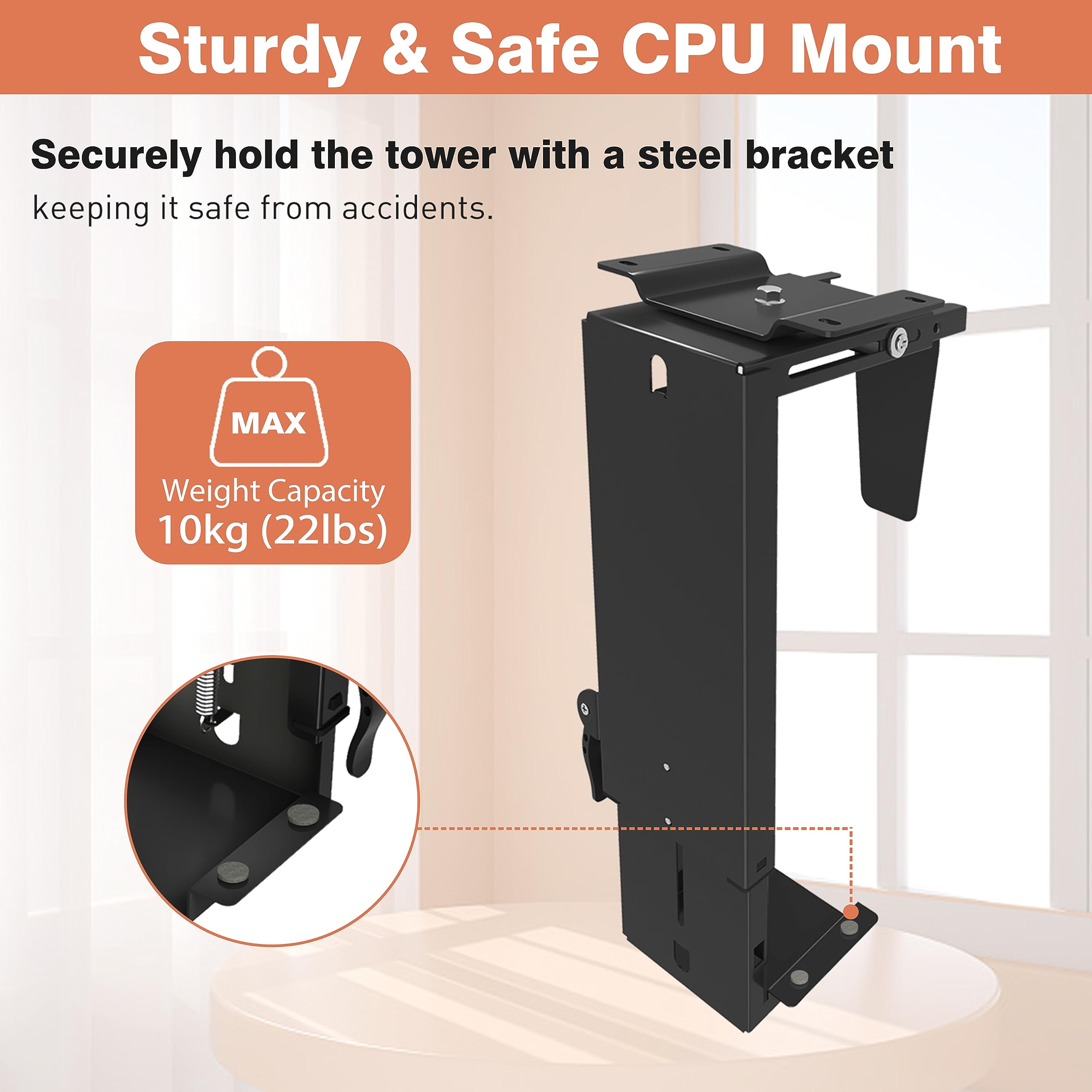 PUTORSEN Support de PC robuste sous le bureau, support réglable Capacité de 35 kg : conçu avec de l'acier de haute qualité et deux piliers de soutien pour une résistance exceptionnelle sans l'encombrement. 8 vis renforcées créent une base solide qui répartit le poids uniformément, offrant une sécurité pour votre précieux PC Support Acier Charge 35kg PUTORSEN Support Pour Boîtier D'ordinateur - Capacité De Charge Jusqu'à Support Ordinateur Sous Le Bureau 1 Salle de jeux 2 Laboratoire 3 Bureau Il permet de gagner de la place et protège efficacement les appareils contre la poussière et les liquides. Optimisé pour une stabilité maximale : support de table pour PC sous la table avec une structure en acier renforcé et une capacité de charge allant jusqu'à 35 kg, adapté à la plupart des boîtiers. PUTORSEN Support de Bureau pour écran Plat et incurvé de 17... Large compatibilité : avec 4 réglages de hauteur (290-590 mm) et une largeur réglable (200-340 mm), ce support pour PC s'adapte à la plupart des grands boîtiers PC. Réajustez sans percer : lors de l'installation, déplacez le support de ±4,5 mm pour garantir un ajustement précis. Circulation d'air optimisée : des ouvertures de ventilation sophistiquées soulagent activement votre PC, pour un refroidissement amélioré, des performances plus stables et une durée de vie plus longue de votre matériel. Optimisé pour une stabilité maximale : support de table pour PC sous la table avec une structure en acier renforcé et une capacité de charge allant jusqu'à 35 kg, adapté à la plupart des boîtiers.