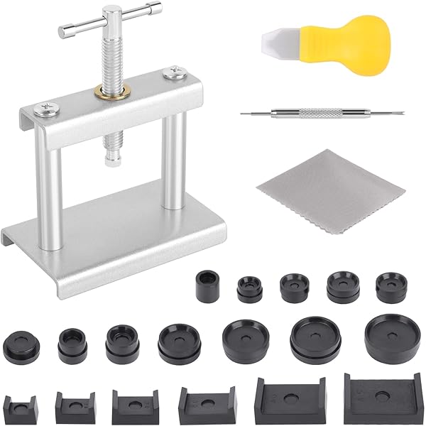 La pression contrôlable minimise le risque de bris du verre. 💖【Haute Qualité】Les presse montre sont fabriqués en métal durable et en ABS, ne rayent pas votre montre et permettent d'ouvrir et de fermer le boîtier en toute sécurité sans égratignures. Kit Reparation Montre Presse De Boîtier Montre, Outil Pour Ouvre Et Fermer Boitier Montre Kit Changement Pile Montre Avec Manuel Dinstruction Pour Les Cadrans Ronds Uniquement 87975578 Presse à Remontoir Montre Professionnel Kit de Presse de Montre]Le kit comprend 18 empreintes de tailles différentes, une presse à remontoir et un ouvre-boîte. Parfait pour le remplacement des... 💖【Sécurité et Stabilité】Nos kit réparateur montre utilisent une technologie de pression verticale - le levier et le bras de force sont alignés pour une distribution uniforme maximale de la pression. Avantages : ✅ Sélectionnez deux empreintes adaptées, vissez-les dans la presse, maintenez et tournez l'empreinte supérieure tout en appuyant sur la poignée. Parfait pour le remplacement des piles, la fermeture du boîtier et l'ajustement des bracelets. Ainsi vous protégerez votre montre. Les empreintes en plastique préviennent les rayures et offrent une prise antidérapante. ✅ Vous contrôlez facilement la pression durant l'opération, réduisant considérablement le risque de fissuration du verre. 💖【Conseil D'utilisation】Régler le levier en position médiane pour éviter tout dommage. ✅ Le outil de réparation de pression de montre convient à la plupart des montres (hommes/femmes) et est idéal pour les ateliers ou les amateurs de réparation horlogère. Ce lot complet comprend 20 matrices de précision de différentes tailles : rondes (18-50 mm), carrées (20-45 mm) et bouclier (37, 45 mm). Parfait pour les... Idéal pour les travaux de précision sans risque. L'empreinte inférieure doit être légèrement plus grande que le verre, l'empreinte supérieure légèrement plus petite que le fond. ✅ Les empreintes sont marquées des tailles pour faciliter le choix et améliorer l'efficacité. Kit Outil Montre, Presse Montre Changement Pile, Ouvre et