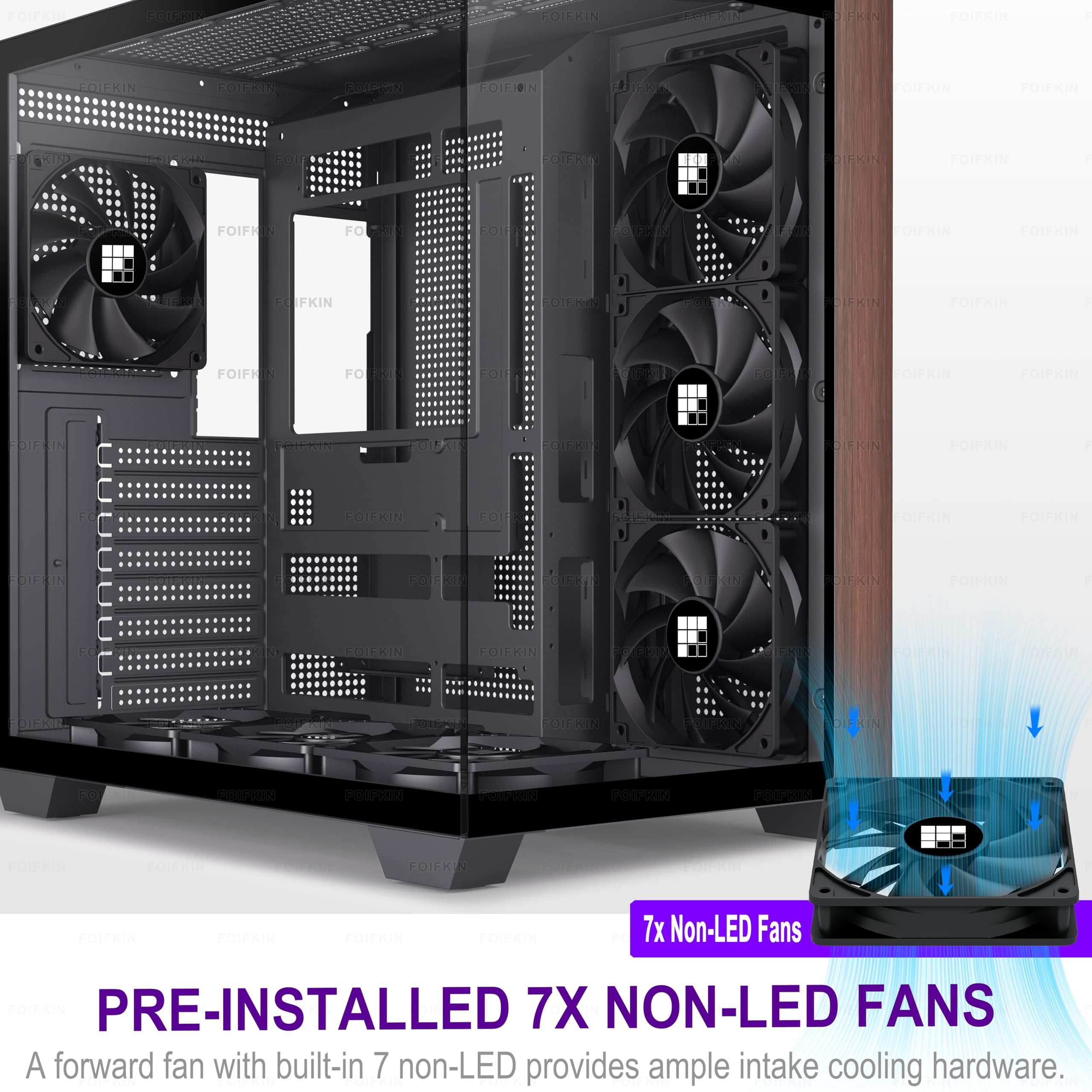 FOIFKIN Boîtier PC – Ventilateur 4 PWM ARGB pré-installé, boîtier PC de jeu ATX, M1 Livré avec 3 ventilateurs ARGB PWM à lame inversée - donc refroidissement efficace dès le départ. Compatible avec cartes mères ATX/M-ATX/ITX, refroidisseurs jusqu'à 170mm, cartes graphiques jusqu'à 400mm, et alimentations ATX jusqu'à 220mm Boîtier Pc Gamer Atx FOIFKIN M9 - Boîtier PC De Jeu ATX, Panneau Avant En Noyer, Ventilateurs ARGB 3 PWM Pré-installés, Verre Panoramique 270°, Noir Boîtier Panoramique 270 Taille du boîtier d'ordinateur : 41,4 x 30 x 38,1 cm (L x l x H) Les points de montage latéraux, supérieurs et PSU du châssis peuvent accueillir jusqu'à 10 ventilateurs de 120 mm, vous assurant que vous n'aurez pas à sacrifier les performances de refroidissement pour l'apparence époustouflante du panneau en verre. Taille du boîtier d'ordinateur : 41,4 x 30 x 38,1 cm (L x l x H) [Refroidissement haute performance ] le M09 est livré avec 3 ventilateurs à lame inversée ARGB PWM, et les panneaux latéraux en verre sont articulés pour un retrait rapide et facile sans outil, ce qui facilite l'installation et le refroidissement de votre PC Refroidissement haute performance : le M9 est livré avec 3 ventilateurs à lame inversée ARGB PWM, et les panneaux latéraux en verre sont articulés pour un retrait rapide et facile sans outil, ce qui facilite l'installation et le refroidissement de votre PC. 【Ultra grande capacité】L'espace du châssis est configuré pour chaque composant et sera entièrement compatible avec vos nouveaux composants PC. Si vous rencontrez des problèmes avec votre boîte, n'hésitez pas à cliquer sur « S0ld-by-FOIFKIN » pour nous contacter, nous ferons de notre mieux pour vous aider FOIFKIN s'efforce de fournir le meilleur soutien à ses clients Ports d'entrée/sortie : 1 x Type-C 3., 0, 1 x USB 3., 0, 1 x USB 2., 0, microphone et audio, bouton d'alimentation, bouton de redémarrage, bouton de commutation LED