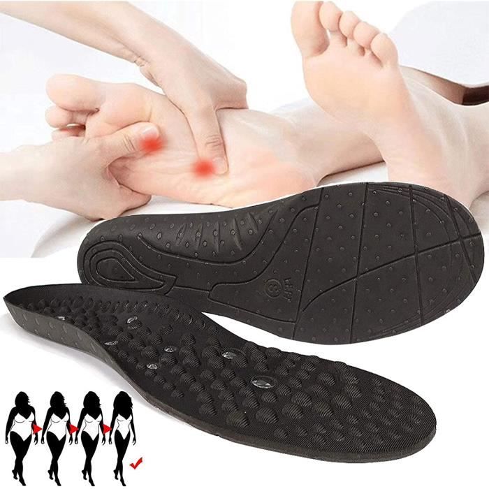 Les semelle magnétique d'acupression sont fabriquées à partir d'aimants naturels de qualité supérieure, de mousse orthopédique hautement élastique et de cuir suédé. La conception ergonomique de la voûte plantaire des acupression semelles magnétiques d'acupression assure confort et soutien. Les semelles magnétiques confortables sont idéales pour la randonnée, la course à pied, le fitness et les activités quotidiennes. La surface avancée absorbant les chocs et antidérapante des semelle thérapie magnétique offre une stabilité optimale, minimisant l'impact des activités quotidiennes sur les pieds. 2 paires semelle magnétique femme homme reflexologie plantaire et Le matériau de rembourrage souple absorbe les vibrations, Semelles magnétiques thérapie réduisant ainsi la pression sur les pieds, les chevilles et les genoux. Semelle magnétiques par acupression aident à réduire la fatigue et à améliorer la qualité du sommeil. Mxzzand Semelles de soutien de la voûte plantaire Semelle Orthopédique... 【Capacité Multi-Usage】 Les semelles de massage d'acupression comportent trois lignes de découpe, permettant aux utilisateurs de les ajuster en fonction de la taille des hommes ou des femmes. Elles sont équipées de 9 aimants naturels de haute qualité pour favoriser la circulation sanguine dans les pieds. Les semelles de massage d'acupression comportent trois lignes de découpe, permettant aux utilisateurs de les ajuster en fonction de la taille des hommes ou des femmes. Semelle Orthopédique Homme Semelle Magnétique, 1 Paire Semelles Magnétiques Pour Soutien Voûte Semelle Akusoli Associant les bienfaits de la Magnétothérapie et de la Réflexologie plantaire, ces semelles sont idéales pour toutes les chaussures de ville, de travail contraignant aussi bien que de sport. Elles réduisant la fatigue, l'inconfort des pieds et les douleurs lombaires et dorsales 【Nombre Accru D'aimants】Basées sur les principes anciens de l'acupuncture chinoise, les semelles thérapie magnétique stimulent les points réflexes de la plante des pieds.
