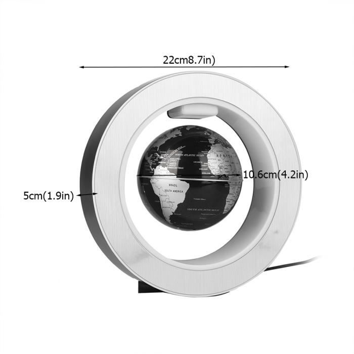 Rappel chaleureux : Ce produit ne fonctionne que branché. Contrôle tactile et éclairage LED Tout ce qui contient des haut-parleurs et des aimants interférera avec le luminaire. Globe Flottant, Globe De Carte Du Monde Flottant 100‑240 V Globe À Lévitation Magnétique Avec... Le globe flottant est un excellent outil éducatif qui aide les enfants à apprendre la terre et l'emplacement géographique de chaque pays, peut également aider à comprendre la lévitation. Le globe flottant magnétique ne s'arrêtera pas sauf si les collisions ou la mise hors tension. ESTINK Globe avec lumière LED Globe flottant à lévitation magnétique Globe rotatif avec lumière... Touchez le bouton d'alimentation sur la base pour allumer/éteindre le globe lumineux ou la lumière de base séparément. Il est assez cool et beau lorsqu'il est allumé dans l'obscurité. Décoration Bureau Cadeau Technologique T4W Globe Flottant Lévitation Magnétique Avec Lumière LED Doré Or Globe Lévitation Couleur du globe : bleu Outils d'enseignement de la géographie pour les enfants Décoration de bureau et cadeau idéal : le globe flottant est un jouet gadget de haute technologie. Une fois l'alimentation coupée, le globe s'adsorbe automatiquement à la base, protège efficacement le globe contre le sol. Elle peut être utilisée comme veilleuse décorative dans une chambre ou un bureau. Adsorption automatique hors tension : le globe flottant magnétique dispose d'un système de protection hors tension. Sans aucun soutien ni contact. Couleur de la lumière LED : Lumière blanche Globe rotatif en lévitation Spécification : Diamètre du globe : 6 pouces Description du produit Globe terrestre à lévitation magnétique Ce globe à lévitation adopte la technologie de lévitation magnétique, il flotte de manière stable et tourne dans l'air automatiquement. Rotation silencieuse à 360 degrés. Globe en lévitation magnétique : le globe peut flotter et tourner de manière stable dans l'air grâce à la technologie de lévitation magnétique. Globe rotatif Globe flottant à lévitation magnétique Globe terrestre 【Lampe globe flottante LED】 globe en lévitation avec lumière LED intégrée.