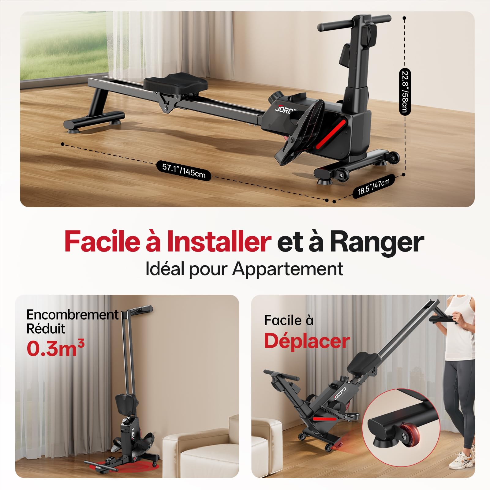 Le support téléphone intégré permet de suivre vos exercices sans les mains, alliant haute technologie et praticité. Rameur Double Rail Stable Test Du Rameur Magnétique Dripex 16 Niveaux Avec Double Rail Et Bluetooth Double Rail Stabilité 158 Kg Pas d'encombrement, juste un fitness efficace et organisé. 20 minutes = 1 heure de jogging en brûlage de calories ! Pré-assemblé à 90%—prêt en 20 minutes avec notice claire. Support Premium – Garantie d'Expérience Satisfaisante: Service Clientèle Premium, Chez JOROTO, votre satisfaction est prioritaire. Test : rameur magnétique Joroto, 16 niveaux de résistance Nous croyons en notre savoir-faire, pour que vous puissiez vous entraîner en toute confiance. Ajustez l'intensité facilement (niveaux 1-8 pour débutants/femmes, 9-16 pour sportifs/hommes). Parcourez des parcours virtuels pour des entraînements stimulants, idéaux pour les utilisateurs à domicile. Gain de Place & Montage Rapide – Parfait pour Petits Espaces: Compact et Facile à Ranger, Conçu pour les petits logements, le rameur MR19 se plie verticalement (0,3 m² de rangement, 0,7 m² en usage). Bénéficiez d'un support 24/7 pour une utilisation sans souci. Test du rameur Bluetooth Merach : compact et ultra-silencieux Le rameur JOROTO MR280PRO allie design en chêne et performance ! Résistance à eau réglable (6 niveaux), siège ergonomique et silencieux. Compatible Kinomap... Le rameur MR19 est conçu pour la durabilité, la performance et une expérience utilisateur optimale. Que vous soyez débutant ou athlète, JOROTO accompagne votre parcours fitness avec un service expert et une qualité durable. Aucune nuisance sonore, juste un entraînement efficace à tout moment. JOROTO – Marque de Fitness Premium pour la Maison : JOROTO est une marque de fitness fiable, engagée à fournir des équipements d'entraînement de haute qualité.