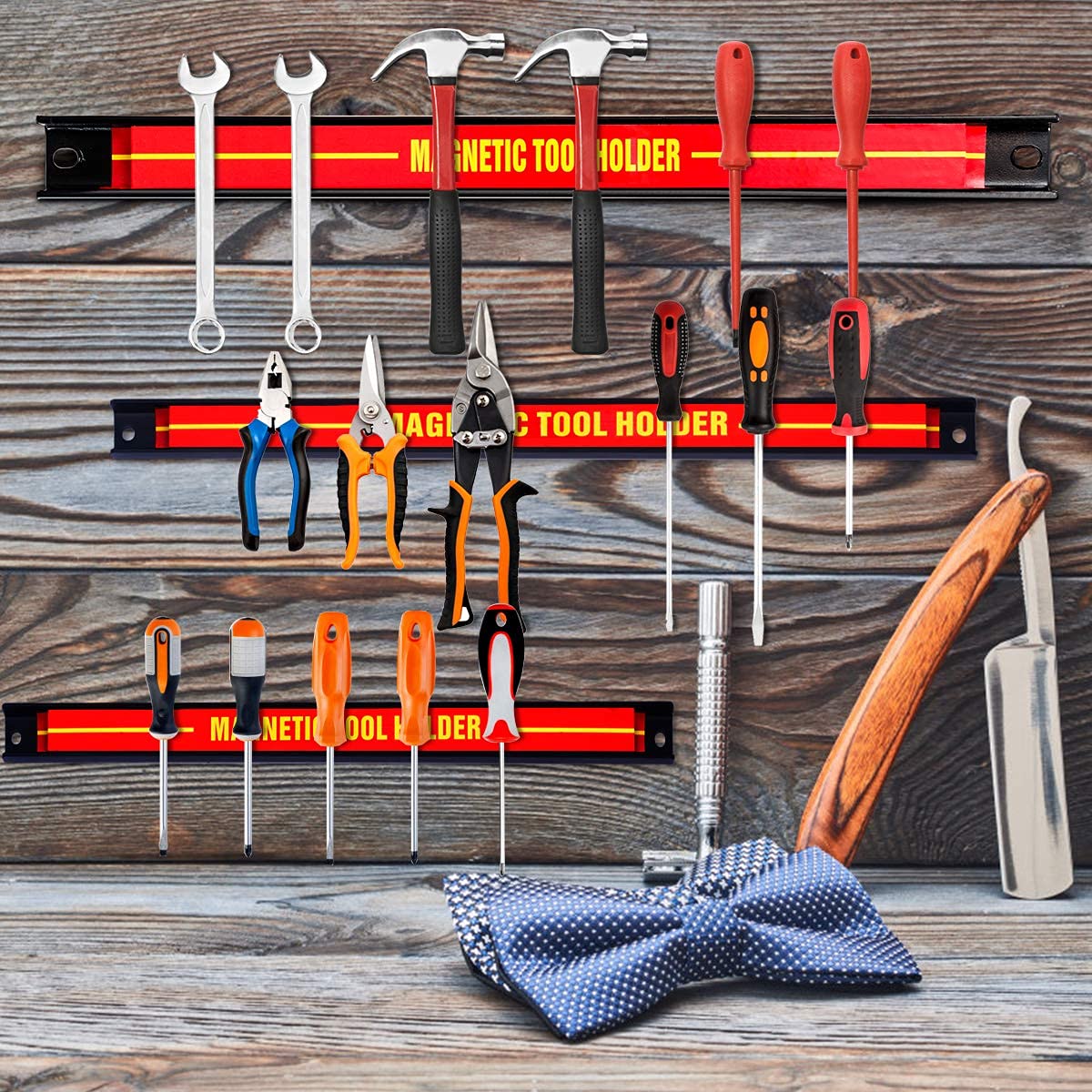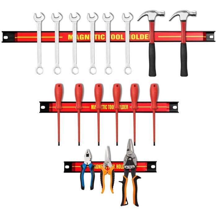 GIANTEX Lot de 3 barres magnétiques de 46 + 30 + 20 cm - Barre # 𝐀𝐢𝐦𝐚𝐧𝐭𝐬 𝐃𝐮𝐫𝐚𝐛𝐥𝐞𝐬 𝐞𝐭 𝐑𝐨𝐛𝐮𝐬𝐭𝐞𝐬 # Nos barres magnétiques sont fabriqués en d'acier difficile à casser et d'aimants puissants, ce qui confère à l'ensemble une excellente durabilité et stabilité. Barre Magnétique Pour Outils COSTWAY Set De 3 Barres Magnétiques Pour Outils 20 Cm 30cm 46cm Barre Aimantée Puissant Mural Support Couteaux Aimanté De plus, la combinaison de 3 barres magnétiques peut avoir une force magnétique plus forte. GYMAX Lot de 2 Bâtons de Randonnée, Bâton de Marche en Aluminium... Set de 3 barres magnétiques pour outils 45cm 23kg charge - Garage... # 𝐓𝐫𝐚𝐧𝐬𝐩𝐨𝐫𝐭 𝐞𝐭 𝐈𝐧𝐬𝐭𝐚𝐥𝐥𝐚𝐭𝐢𝐨𝐧 𝐅𝐚𝐜𝐢𝐥𝐞 # Les barres magnétiques est léger et de conception compacte, ce qui le rend facile à ranger et à déplacer à différents endroits. # 𝐑𝐚𝐧𝐠𝐞𝐦𝐞𝐧𝐭 𝐅𝐚𝐜𝐢𝐥𝐞 & É𝐜𝐨𝐧𝐨𝐦𝐢𝐞 𝐝'𝐄𝐬𝐩𝐚𝐜𝐞 # Cet ensemble de barres magnétiques peut être fermement fixé au mur, ce qui peut vous aider à économiser beaucoup d'espace au sol et à avoir un environnement plus propre. Étant donné que les deux extrémités de chaque barre magnétique ont des trous de montage d'un diamètre de 0,8 mm, vous n'avez besoin que de deux vis pour le fixer de manière stable au mur, ce qui vous permet de terminer l'installation facilement. Et la capacité de charge totale de ces barres magnétiques est de 22 kg. # 𝐔𝐭𝐢𝐥𝐢𝐬𝐚𝐭𝐢𝐨𝐧 𝐌𝐮𝐥𝐭𝐢𝐟𝐨𝐧𝐜𝐭𝐢𝐨𝐧𝐧𝐞𝐥𝐥𝐞 # Nos barres magnétiques peuvent être installées horizontalement ou verticalement selon vos besoins, et les 3 barres peuvent être utilisées séparément pour les ustensiles de cuisine et les outils de réparation. Spécification : Longueur : 20cm/30cm/46cm Capacité de charge : 5kg/7kg/10kg Matière : Acier Poids : 1,6kg Couleur : Rouge+Noir+Jaune Livraison : 3 x Barres magnétiques