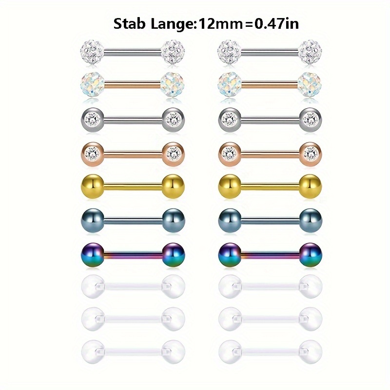 Service Client Agrewd : Fournir des bijoux de percing de qualité premium qui satisfont les besoins des clients est notre objectif principal. Piercing Corps 14mm Piercing Téton Anneau Femme Piercing Téton Double Cœur En Acier Piercing Teton Description du produit Agrewd 2PCS Piercing Teton 14G Suspendu Bijou Il est proposé ausi en matériau souple pour plus de confort : le bijou de téton en bioplast est très léger et agréable à porter. Il est possible d’écarter le piercing de téton et y poser des piercing de gros diamètres: anneaux, fers à cheval et barres droites Taille Précise pour un Ajustement Sûr : Diamètre : 14G/1,6 MM ; Longueur de la barre : 14 MM. Cette taille offre un ajustement confortable yet sûr, la rendant adaptée à une variété de piercings tout en maintenant un profil discret et élégant Bijou labret 1,2 mm acier 316L avec pic coloré acier anodisé à visser... Une commande contient 2 barres de mamelon Fabriquée en acier inoxydable 316L de haute qualité, cette barre de mamelon est durable, résistante à la corrosion et conçue pour un port à long terme. Sa surface polie assure une sensation douce contre la peau, offrant un confort toute la journée sans irritation Funseedrr 2-4 Paires Teton Mamelon Piercing Barbells Acier Piercing Teton Étincelante : Cette superbe barre de mamelon présente une base argentée élégante ornée d'une rangée de pierres de zirconia colorées en forme de trapèze. Idéal pour les Occasions Spéciales ou l'Expression Personnelle : Que vous vous rendiez à une fête, un festival, ou que vous souhaitiez simplement rehausser votre style quotidien, cette barre de mamelon ajoute une déclaration audacieuse.