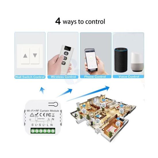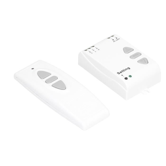 Interrupteur Rideau électrique AC 500W Rideau Motorisé Électrique,télécommande De Rideau électrique,télécommande Multi-canaux Pour Télécommande Volet Roulant Tuya-Joli de rideau intelligent WiFi,télécommande sans fil RF,ennemi 433 MHz - Interrupteur électrique sans fil à écran tactile 433Mhz HA 4302, 3 boutons... Champ d'application : ce produit est utilisé pour la tension AC220V / 50 à 60 Hz (d'autres spécifications peuvent être personnalisées), le moteur AC, le contrôle d'arrêt, comme l'écran électrique, le rideau, les écrans d'ombre, la porte électrique, etc. Utilisez cette méthode pour étudier plusieurs télécommandes pour contrôler la machine., 4., Si vous voulez retirer la télécommande est compatible avec plus de 15 secondes sur le bouton STOP, lorsque vous avez trois morceaux courts de chanson ont été retirés. Remarque : 1, si le moteur ne fonctionne pas après l'installation peut échanger la ligne de direction. Paramètres du produit : 1., Récepteur de télécommande., 2., Interrupteur élévateur, contrôle manuel, interface de contrôle électrique., 3., Style élégant, facile à utiliser., 4., La tension est de 220 V. Ce produit utilise l'importation de puce IC et adopte la technologie de pointe, design raisonnable, belle forme. La télécommande et le contrôle manuel sont entièrement compatibles, le fonctionnement est simple et pratique. Champ d'application : ce produit est utilisé pour la tension AC220V / 50 à 60Hz (d'autres spécifications peuvent être personnalisées), le moteur AC est le contrôle d'arrêt, comme l'écran électrique, le rideau, les images d'ombre, la porte électrique, etc. Motorisation silencieuse, ou sans fil, utilisant la technologie radio RTS. Découvrez nos solutions pour écran de projection électrique et choississez celle qui répond à vos besoins