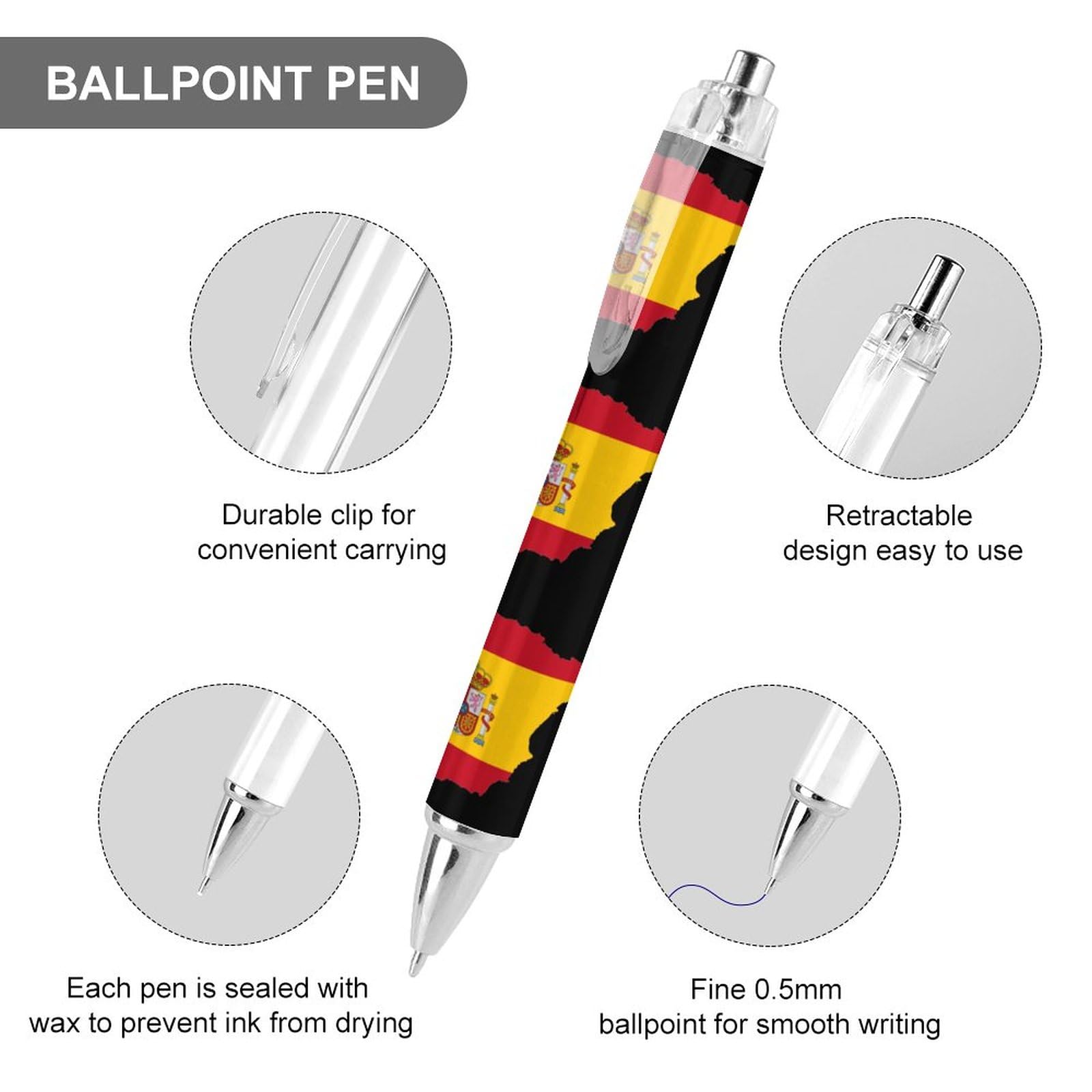 Recommandation de lavage : essuyer simplement. Stylo PC Haute Qualité Stylo à Bille Rétractable Avec Drapeau De L'État Du Connecticut, 0,5 Mm Stylo Bille Il assure un tracé fluide et précis, minimisant la fatigue de la main, même lors de séances d'écriture prolongées. Stylo bille Rotring Tikky rétractable - blanc Description du matériau : Ce stylo à bille rétractable est fabriqué en PC de haute qualité pour une durabilité et une écriture confortable. Structure des accessoires : Stylo à encre noire pour une écriture fluide. 9 pièces Stylos-Bille Rétractables, Stylo à bille, 1mm Stylos Crayon Rétractable, Stylos à bille... C'est l'outil d'écriture idéal pour le travail, les études et la vie quotidienne. Ce stylo à bille noir est doté d'une pointe fine de 0,5 mm pour des lignes nettes et précises. Son design rétractable facilite son utilisation, évite de perdre le capuchon et le rend portable. Étape 3 de la Tourne de l'Espagne 2025, en direct Son encre noire riche coule de manière fluide et continue, ce qui le rend idéal pour ceux qui apprécient la lisibilité et la propreté. Cadeau parfait : l'impression de haute qualité en fait un cadeau parfait pour la famille, les amis, les collègues ou les enfants.