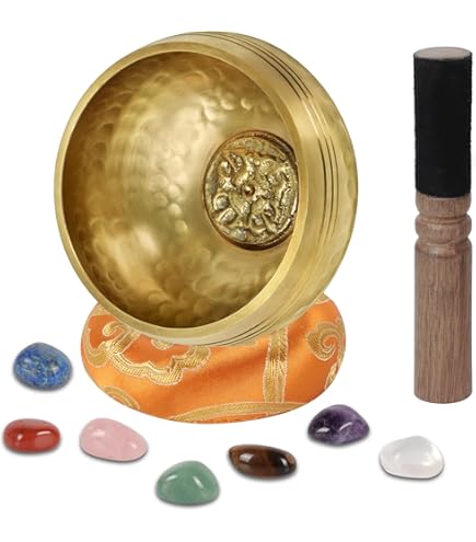 Meilleur fabricant de 8cm de diamètre en laiton ma... – Grandado Idéal pour favoriser la pleine conscience, un meilleur sommeil, le repos intérieur, ainsi que pour une utilisation en psychothérapie ou en hypnose. Bol Diamètre 8.6 Cm Bol Chantant Tibétain BYZESTY - Diamètre : 8 Cm - Avec Coussin - Pour La Relaxation Et La Méditation Bol Méditation Laiton 8,6cm Musique de guérison merveilleuse : tenez le bol de méditation dans votre main, jouez doucement avec le maillet et profitez des tons clairs et longs. Bols chantants Ulta Bathi : parfaits pour la méditation Indian Art bols chantants tibétains pour la méditation par vibrations... En même temps, ils sont parfaits comme accessoire décoratif pour votre maison, votre voiture ou votre bureau. Comprend deux cloches en laiton : en plus d'un bol, d'un maillet en bois, d'un coussin et d'un sac, l'ensemble comprend deux cloches en laiton supplémentaires. Parfait pour les amateurs de yoga, les amateurs de méditation, les thérapeutes et les personnes spirituelles. Comprend un maillet en bois, un coussin, un sac et 2 cloches en laiton. Ceux-ci produisent un son clair et doux qui peut être magnifiquement combiné avec le bol. Idéal pour le yoga, la méditation, le Reiki ou la thérapie par le son.