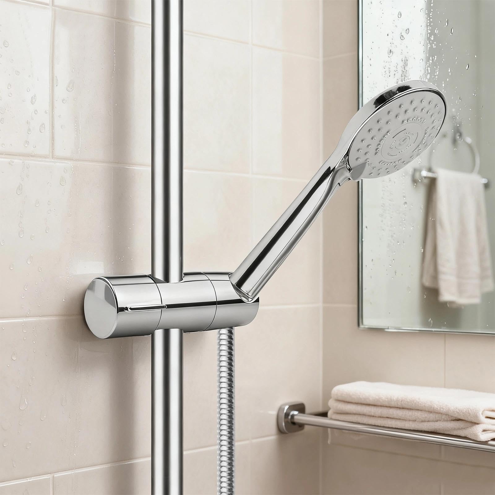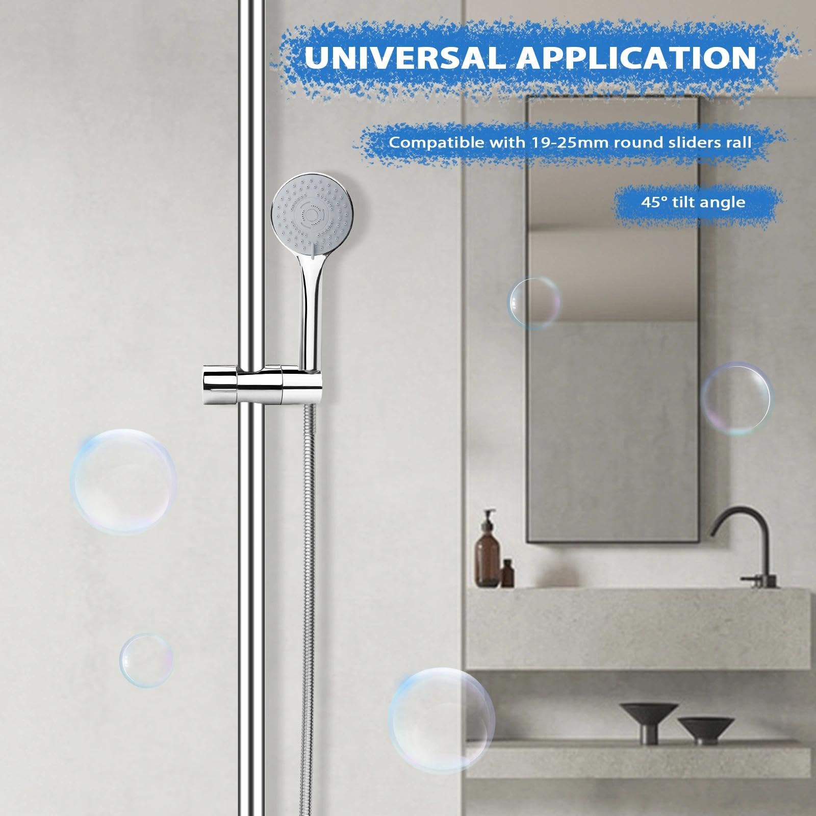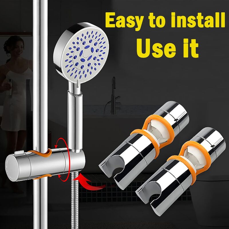 Support Produit Douche Support De Pommeau De Douche,support De Douche À Main Réglable D'un Diamètre De 19 À 25 Mm (0,75 À 1,00 Pouces) Pour La Barre Coulissante, Pince Coulissante Amovible Pour Remplacement De Salle Pince Coulissante Barre Douche LOLYPOT Universel Support de Pommeau de Douche pour Salle de Bain Support de Douchette Support Support de pomme de douche à main réglable, support de douche à main, pince coulissante, remplacement de salle de bains à 360 degrés ; 1,00€ coupon pour... Veuillez vérifier la taille avant d'acheter. Rotation à 90 degrés : Le support pivote à 90 degrés, vous permettant d'ajuster librement l'angle selon vos besoins. Conception intégrée : Le support est conçu pour un desserrage plus facile et un aspect plus esthétique que les produits à visser. La hauteur du pommeau de douche est réglable en continu sur la barre pour un confort optimal pour tous les membres de la famille. Installation facile : Ce support de pommeau de douche est facile à remplacer sans outils. Il suffit de visser le support sur la barre de douche et de le serrer. Support de pommeau de douche de haute qualité : Fabriqué en ABS de haute qualité avec une finition chromée, ce support de pommeau de douche est de haute qualité et durable. Il s'agit d'une pièce détachée standard de qualité pour tringle de douche de 18 à 25 mm de diamètre. Rotation à 360 ° : le support de pomme de douche est réglable dans n'importe quel angle et la partie d'extrémité peut pivoter suffisamment à 360 °, de sorte que l'angle peut être ajusté librement