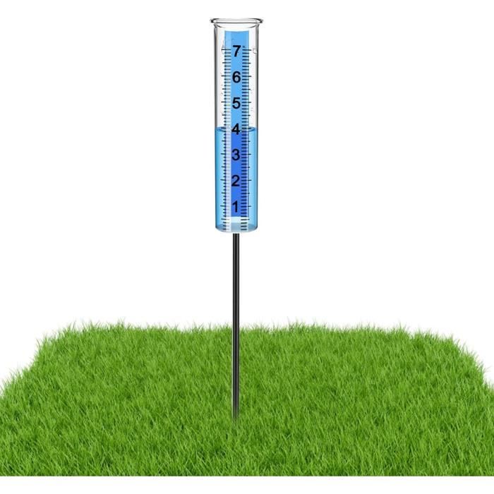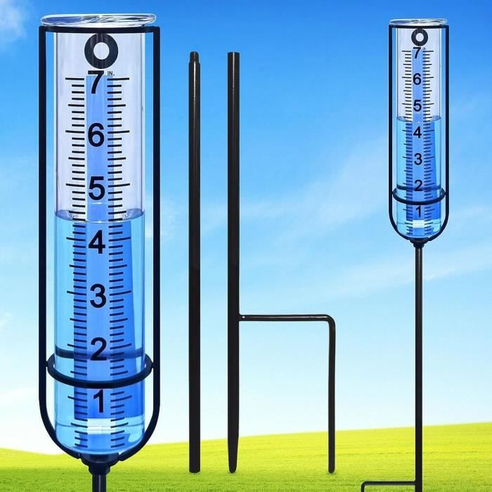Frissons : 50-100 mm en une journée (24 heures). C'est une aide idéale pour le jardinage et l'agriculture, ainsi que pour tous ceux qui veulent en savoir plus sur la nature. Tempête : 100-250 mm de précipitations en 1 jour (24 heures). LUTER Pluviomètre Extérieur, 17 cm Pluviomètre en Verre de Grande... 【Facile à utiliser】 : le pluviomètre est facile à installer et à enlever, il suffit de brancher le support et de le placer sur le sol, aucun autre outil n'est nécessaire, simple et pratique, économisez du temps et des efforts. Les mesures étant prises à la main, les tailles indiquées peuvent varier de 1 à 3 cm. Mesure précise : le pluviomètre extérieur dispose d'un tube en verre de 17,8 cm avec des marques claires, permettant une mesure précise et précise de la... Le tube de réactif en verre est épais et durable, transparent et visible, de haute clarté, peut facilement déterminer le niveau d'eau. Facile à lire : le pluviomètre a deux échelles : centimètres et pouces, allant respectivement de 0 à 17 cm et 0 à 7 pouces. Pluviomètre Facile à Installer échelle Double FSWWSF Pluviomètre En Verre Pour Extérieur, 17 Cm, Avec Pluviomètre En Verre Extérieur À des températures proches du point de congélation, l'eau de pluie peut geler en frappant le pluviomètre, ce qui peut provoquer des entonnoirs bouchés ou d'autres problèmes. Conseil : Les possibilités de mesure du pluviomètre sont limitées. Le jardin sera encore plus joliment décoré. Un outil pratique pour tout observateur de la météo, jardinier amateur ou agriculteur. Les échelles sont claires et précises. Avec ce pluviomètre robuste, fiable et bien fait pour l'extérieur, vous pouvez facilement lire la quantité de précipitations. Contenu du colis : 1 pluviomètre de jardin. Comme avec d'autres instruments météorologiques, les pluviomètres doivent être placés dans une zone libre près des bâtiments et des arbres pour minimiser les erreurs d'observation. De plus, l'eau de pluie collée aux parois du tonneau ou de l'entonnoir peut rendre les lectures légèrement insuffisantes. Pluviomètre Il s'agit d'un pluviomètre pratique pour une détermination facile et précise des précipitations. Le cylindre de mesure peut être facilement retiré du support pour vider. Dimensions : 42,6 x 5 x 5 cm., Poids : 300 g. Pluviomètre, pluviomètre en verre avec pointe en métal, pluviomètre (1 pouce = 2,54 cm) Si vous avez des questions sur notre pluviomètre extérieur, veuillez nous contacter à temps, nous vous fournirons une solution raisonnable.