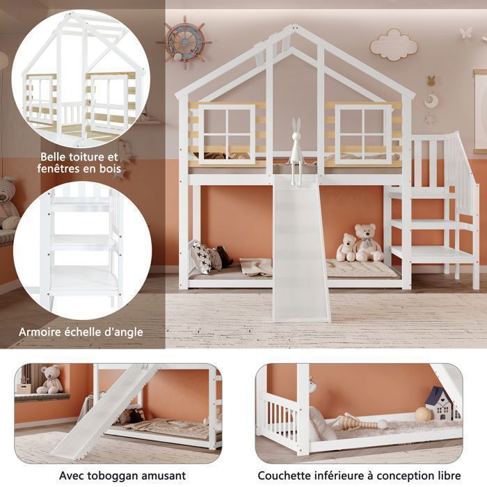 Une installation manuelle est recommandée. Lit Superpose Lit Superposé 90 X 200 Cm Avec Toit Et Fenêtre - Pin Et MDF - Pour Enfant - Blanc Et Noyer (Sans Matelas) | Leroy Merlin Lit Cabane Enfant Parfois, il n'y a rien de plus agréable que de jouer dans une cabane dans les arbres. EN STOCK : Lit superposé 90x200, sécurisé gain de place avec tiroirs et toboggan lit superposé enfant pas cher - Retrait & Livraison - Paiement 4X disponible. Chambre enfant à prix discount Le lit gigogne sous le lit est idéal pour accueillir vos amis ou vos invités. Description Matériau : MDF + pin Dimensions : 90 x 200 cm Couleur : blanc + vert Nombre de colis : 4 Assemblage requis : oui Origine : Chine Dimensions Dimensions du produit (cm) : 205,4 x 236,5 x 228,6 Dimensions intérieures (cm) : 90 x 200 Hauteur (cm) : 228,6 Nombre de lattes : 15 pièces Épaisseur de matelas recommandée pour le lit : 10-15 cm Épaisseur de matelas recommandée pour les lits gigognes : 10 cm Capacité de poids du lit : 120 kg Lit superposé Enfant 90 x 200 cm avec lit gigogne, Toboggan et échelle latérale, lit cabane avec fenêtre, Forme de Toit, sommier à Lattes en Bois, Blanc et... Les barrières de lit intégrées peuvent être remplacées à volonté. Les enfants peuvent ainsi faire semblant de jouer dehors et s'endormir comme s'ils étaient dehors. 【Avec lit gigogne】 Le lit gigogne intégré sous le lit est idéal pour accueillir vos amis ou vos invités. Lit Superposé 90x200, Sécurisé Gain De Place Avec Tiroirs Et Toboggan Lit Superpose Enfant Le lit en pin massif et MDF est disponible en blanc et vert vifs et s'harmonise avec tous les coloris. Grâce à des instructions d'installation étape par étape et des trous pré-percés, vous pouvez facilement assembler cette table d'appoint de manière personnalisée.