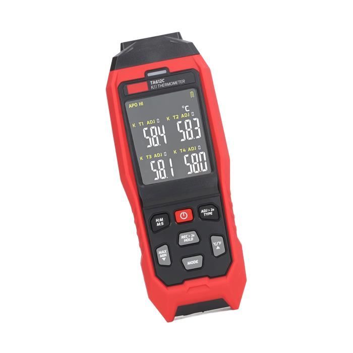TM-902C (-50C à 1300C) Température Mètre TM902C Numérique de Type K Profitez d'un affichage clair Thermomètre De Précision Hanna Instruments Thermomètre à Thermocouple De Type K à Double Entrée Thermomètre TM-902C -50 à 500°C Les écrans faciles à lire peuvent être vus sous n’importe quel angle. THERMOMÈTRE THERMOCOUPLE NUMÉRIQUE 2 canaux type K 6802 II avec sonde à... 1 x Thermomètre numérique, 1 x pile 9 V 2 x Thermocouple de type K, 1 x livre Instrution Description Écran LCD numérique de type K. Indication de batterie faible, protection contre les surcharges, avec interrupteur marche / arrêt. Idéal pour mesurer la température de l'air, du liquide, du semi-solide, etc. Lit tous les thermocouples de... 【Petite taille et poids léger】Avec un corps petit et pratique, notre thermomètre est confortable à tenir, compact et léger et facile à transporter. Ce thermomètre est polyvalent Aucun processus de câblage compliqué requis et la mesure et le fonctionnement sont très simples 【Écran LCD】 Notre thermomètre numérique, équipé d'un grand écran LCD, affiche intuitivement les valeurs mesurées. Il est et de pour répondre à vos besoins Spécification :Type d'élément : ThermomètreModèle : Tm-902cMatériau du thermomètre : ABSMatériau du thermocouple : Acier résistant à la chaleurAlimentation du thermomètre : 1 x pile 6F22 9V (pile non incluse)br/ Objectif : Détection de température industrielleThermocouple à poignée droitePlage de température -50-500℃Diamètre de la tête d'induction : 15 mm / 0,6 poucesZone d'application température du gaz et du liquideTemps de réponse thermique <5 sCaractéristiques poignée droiteThermomètrePropriétés du capteur thermocouple type K (NiCi-Niai)Résolution 0, 1℃ (-199,9℃-199,9℃)1℃ (200-1370℃)Précision 0℃-500℃ : ±(0,75℃+1℃)500℃-750℃ : ±(1%+1℃)0℃ - -20℃ : ±2℃750℃ - 1000℃(±3℃ - +0℃)-20℃ - -40℃ : ±3℃1000℃ - 1370℃(±5℃ - +3℃)-40℃ - -50 ℃ : ±3 ℃Plage de mesure -50℃-750℃/-50℃-1300℃Température de fonctionnement 0℃-50℃, température relativeTempérature de stockage -10℃-60℃, température relativeRequête de polarité Requête LCD (3 1/2) automatiquementInvite d'ouverture Lorsque le capteur est ouvert, le message « 1 » apparaît sur l'écran., Liste de colisage